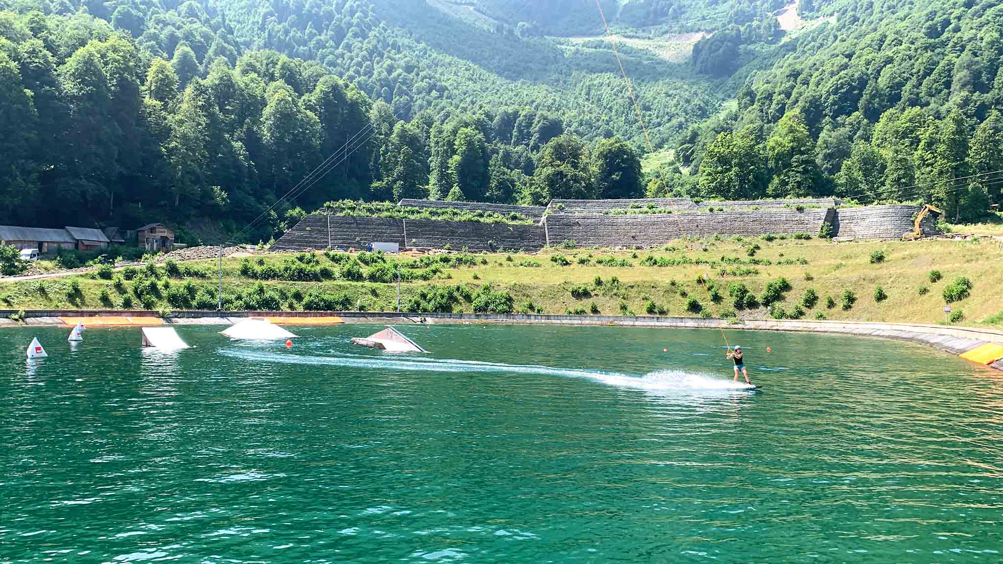 Для тех, кто считает, что досочные виды спорта на Розе Хутор развиты только в зимний период, здесь готовы это опровергнуть. На Верхнем озере (1050 м) оборудован полноценный вейк-парк с двумя реверсивными лебедками: base (без фигур) и pro (с фигурами), где новички могут открыть для себя небанальный вид спорта, а прорайдеры оттачивать мастерство джиббинга. И все это с невероятно красивым видом на горы! Кстати, это самый высокогорный вейк-парк в России. Также здесь можно попробовать вейкскейт (доска без креплений) и вейкфоил (доска с подводным крылом).