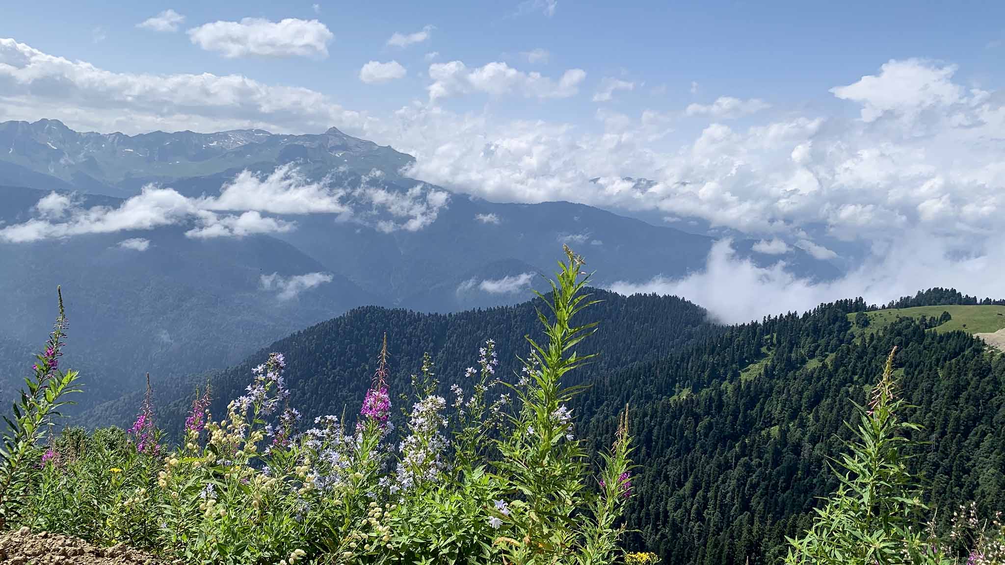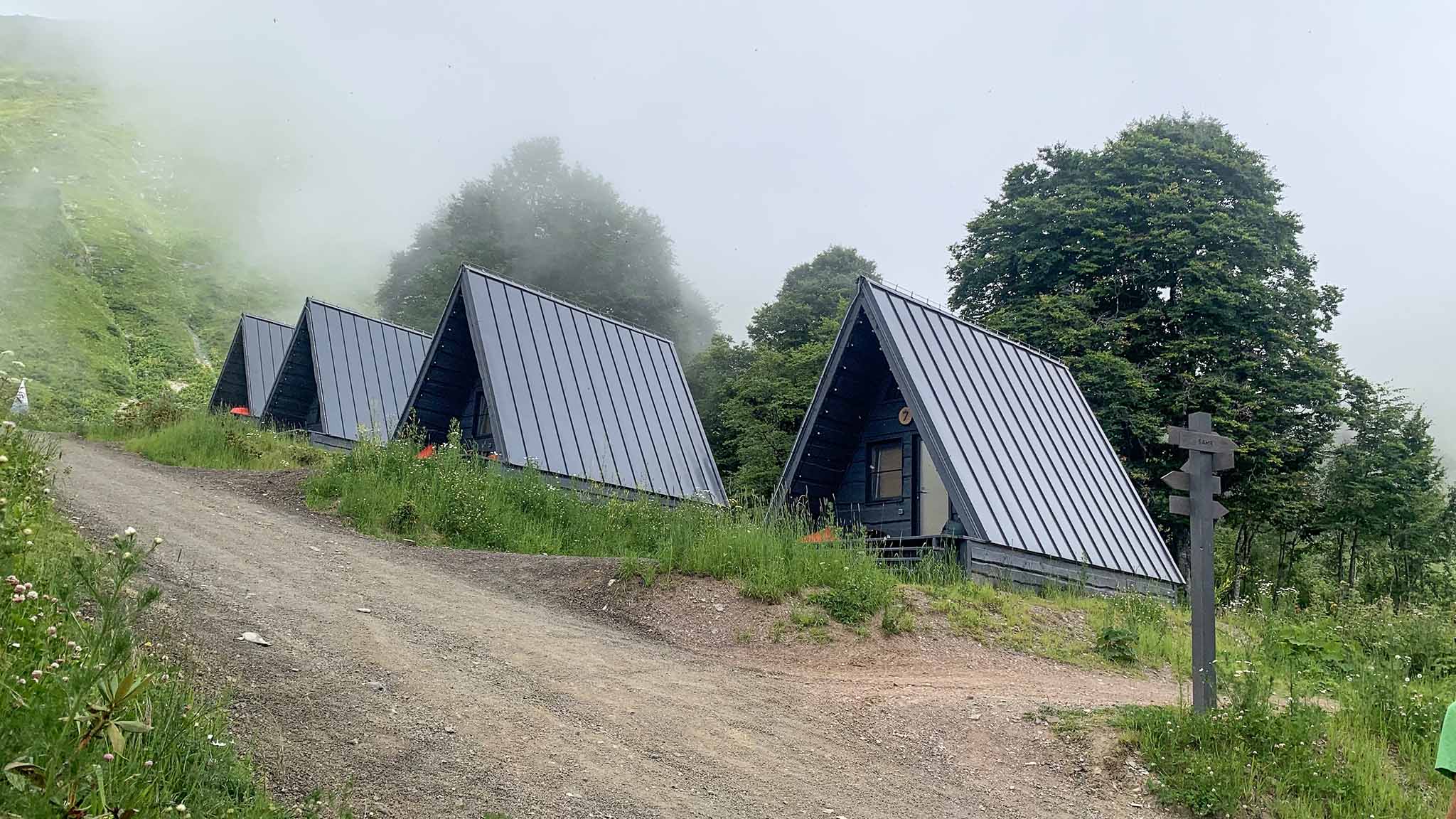 Вместе с «Нахазо» открылся и одноименный маршрут до кемпинга, который начинается от вершины Розы Пик. Протяженность маршрута ― 7 км, и проходит он по невероятно красивым местам: горные вершины и цветущие склоны, на которые то и дело набегают облака, сменяются лугами и лесом. Маршрут достаточно комфортный и в спокойном темпе занимает 3 часа. По пути есть места, где можно расположиться, отдохнуть и полюбоваться видами. А также площадки с самыми удачными ракурсами для фотографий. Чтобы не сбиться с пути, по всему маршруту обозначены специальные метки ― синие квадраты. Перепад высот ― 420 м, дорога ровная, но обувь лучше брать подходящую для горного треккинга.