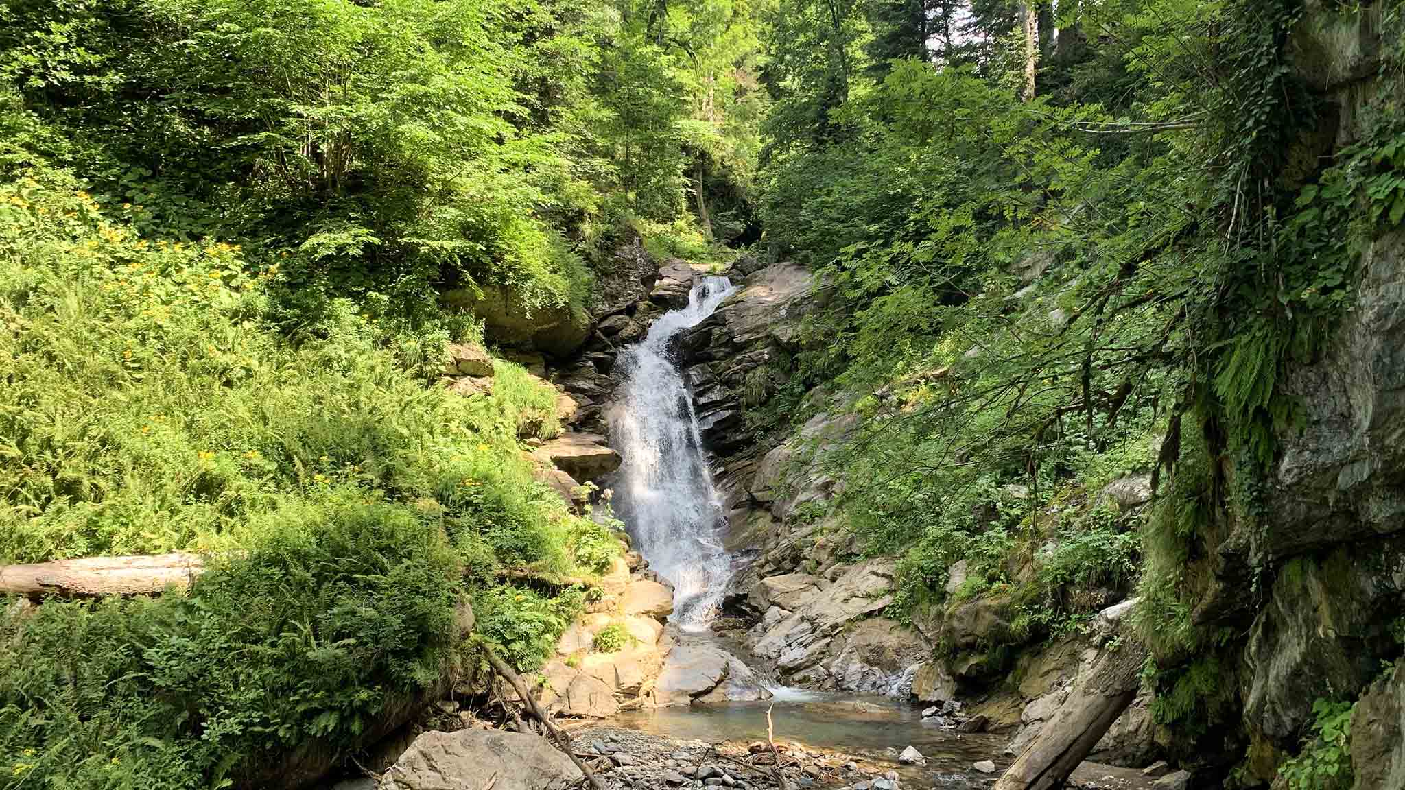Начните свое путешествие со знаменитого парка водопадов «Менделиха». Находится он на южном склоне хребта Аибга на высоте 1470 м. Чтобы туда попасть, вам нужно подняться на трех очередях канатной дороги до Розы Пик, а потом спуститься на другую сторону горы на открытой кресельной канатной дороге «Эдельвейс».
