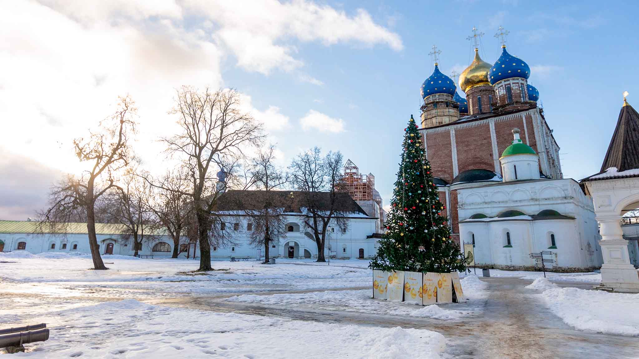 Если вы решили посетить Рязань зимой, стоит выбрать новогодние каникулы. В праздничные дни тут на площади стоит огромная наряженная елка, а сам кремль под снежными шапками выглядит особенно живописно и празднично.