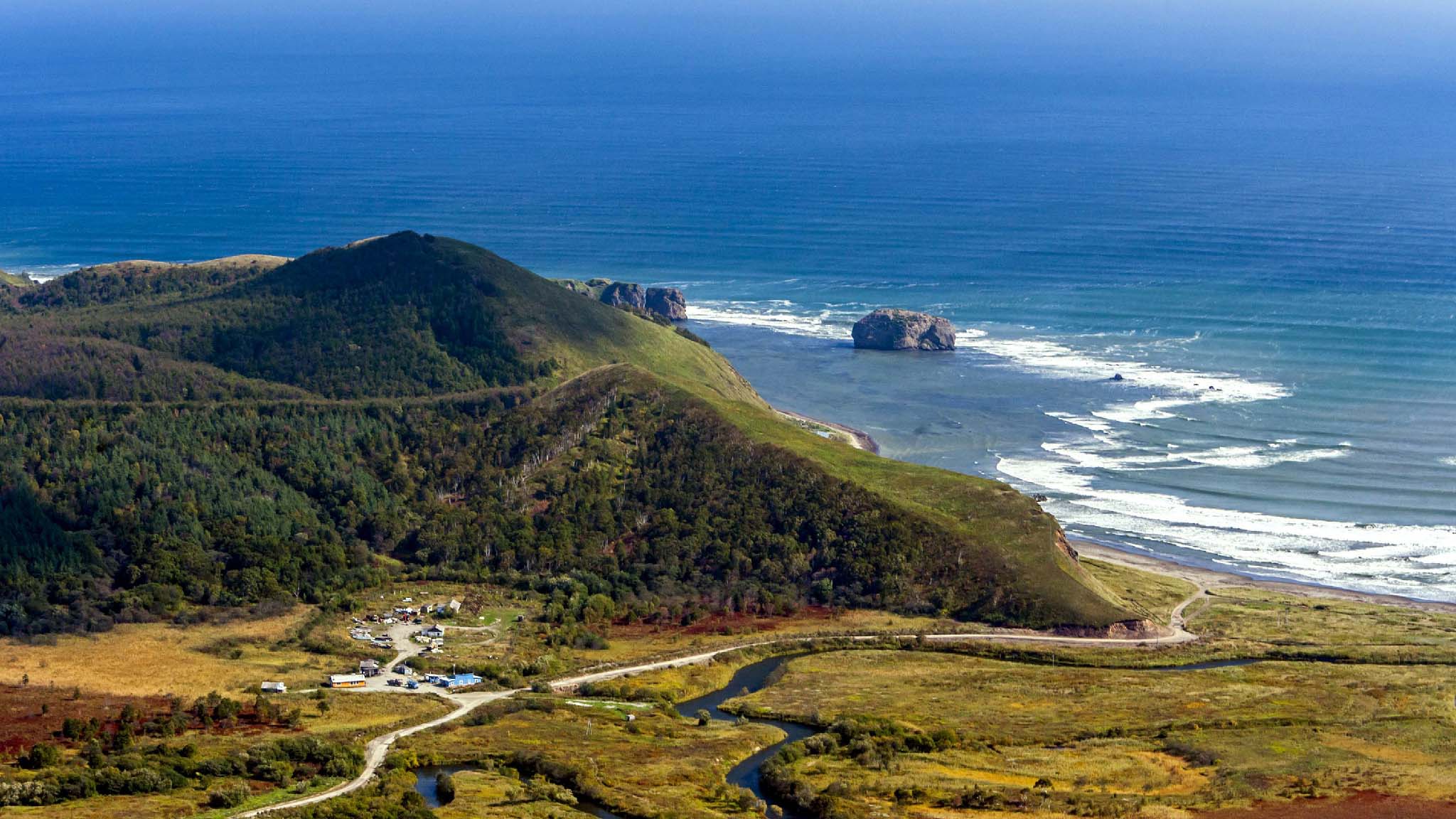 Ну, во-первых, это удивительная флора и фауна Сахалина. Дорога на маяк Анива проходит по Анивскому заливу, где можно насладиться видами великолепных гор и водопадов, а по пути, если повезет с погодой, вас проводят касатки и дельфины.
