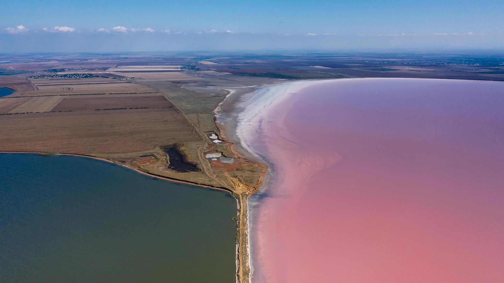 Недалеко от Сак находится уникальный памятник природы — озеро Сасык-Сиваш. Самое крупное соленое озеро Крыма окрашено в розовый цвет. И зрелище это поистине фантастическое: зеркальная гладь и вода цвета клубничного мороженого. Такую окраску озеру придают микроскопические водоросли, безвредные для человека. Сюда едут ради того, чтобы прикоснуться к чуду и сделать впечатляющую фотосессию.