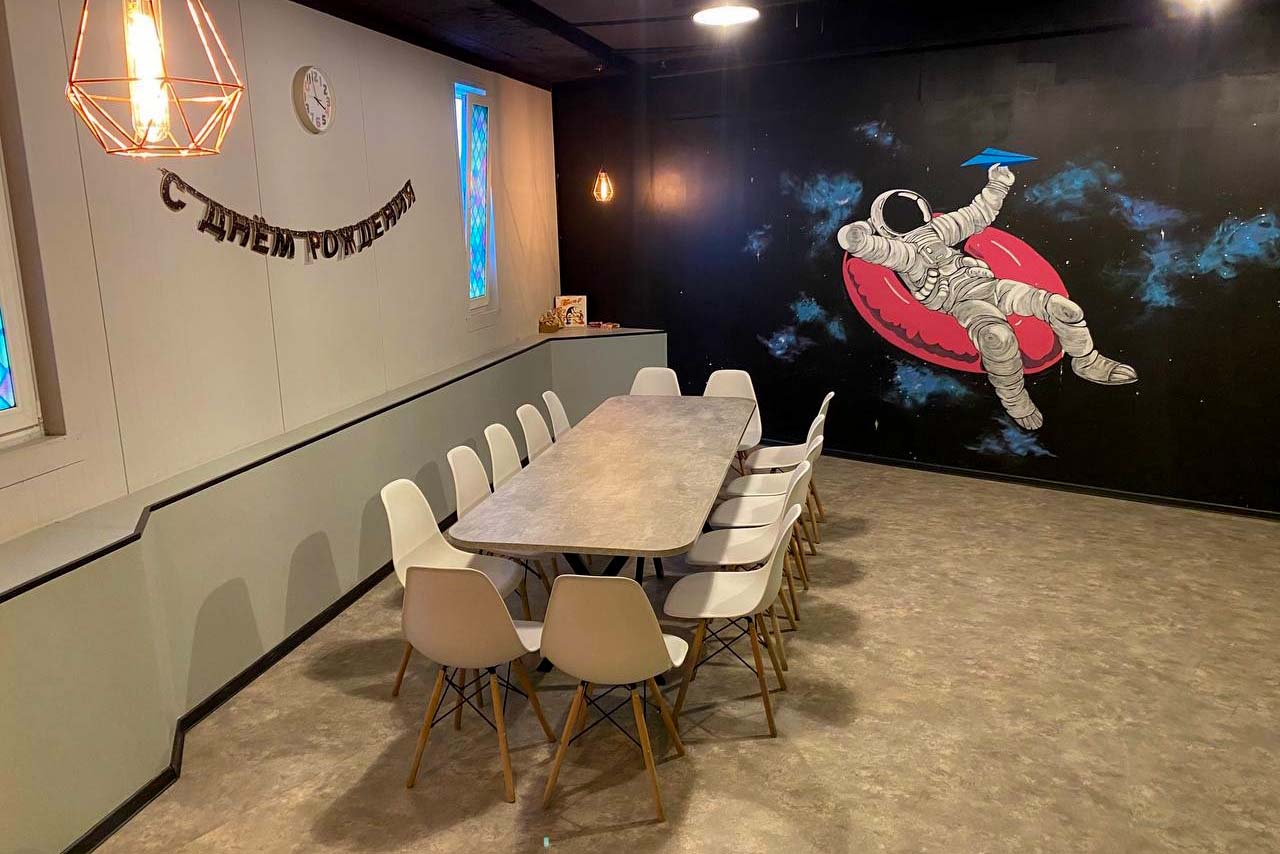 Для праздничного застолья можно разместиться в одном из 3 комфортных банкетных залов вместимостью до 20 человек. Залы оснащены необходимой техникой, есть настольные игры. На день рождения с собой можно принести угощения.