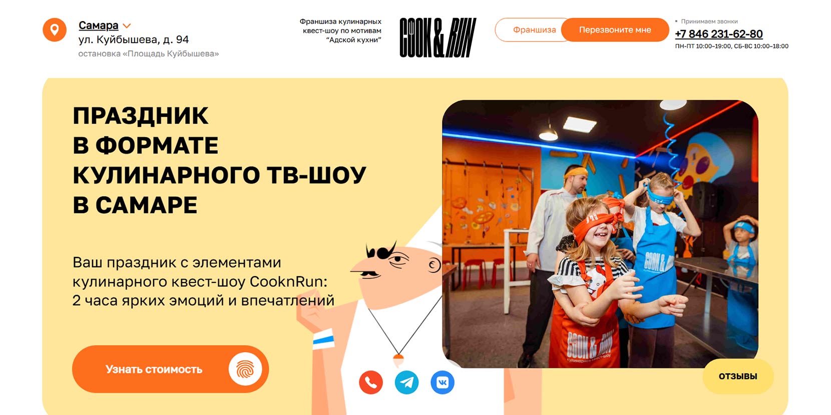 Мастер-классы по готовке — формат, который становится все более востребованным у самарцев. Кулинарная студия «Фартук» предлагает кондитерские и творческие мастер-классы и другие формы досуга, в том числе взрослые и детские день рождения. Можно записаться на мероприятие по расписанию заведения или договориться об индивидуальном. Студия также занимается кейтерингом.