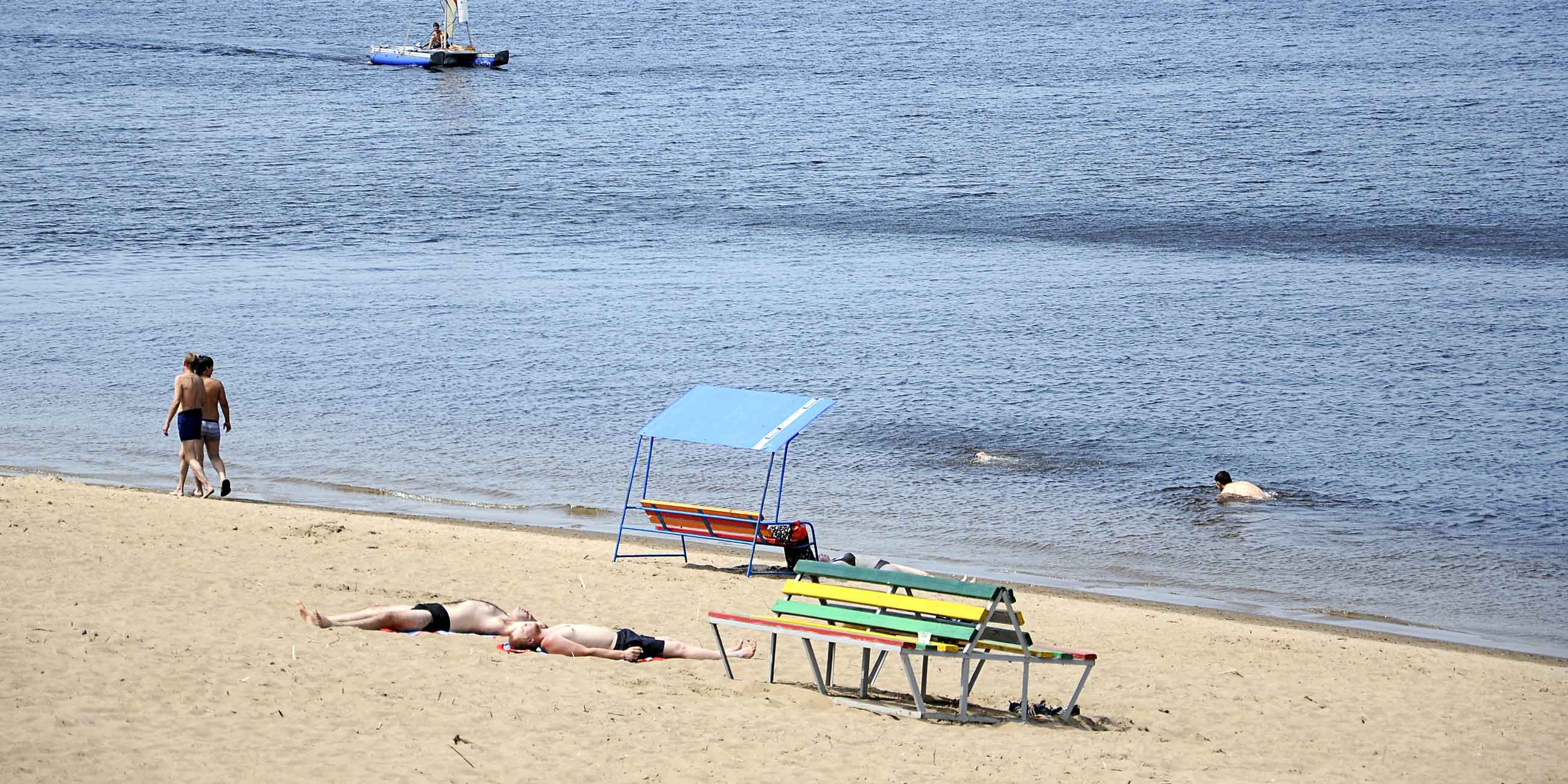 Городской пляж в Самаре бесплатный. Многокилометровый берег Волги покрыт золотистым речным песком, по которому приятно ходить и лежать. Пляж убирают два раза в день. Лежаков и отдельных зонтиков для отдыхающих нет, но вдоль берега стоят скамейки с навесами, есть кабинки для переодевания.