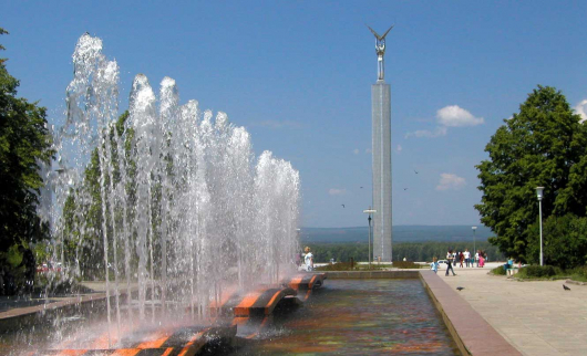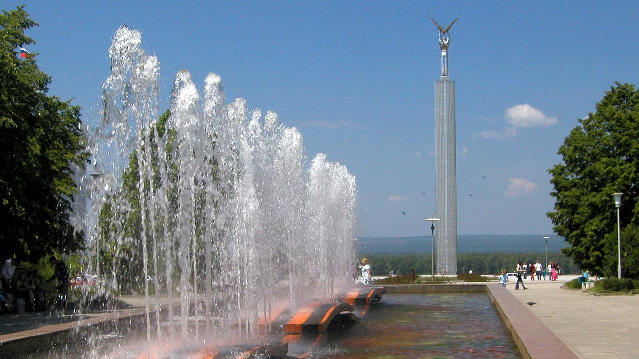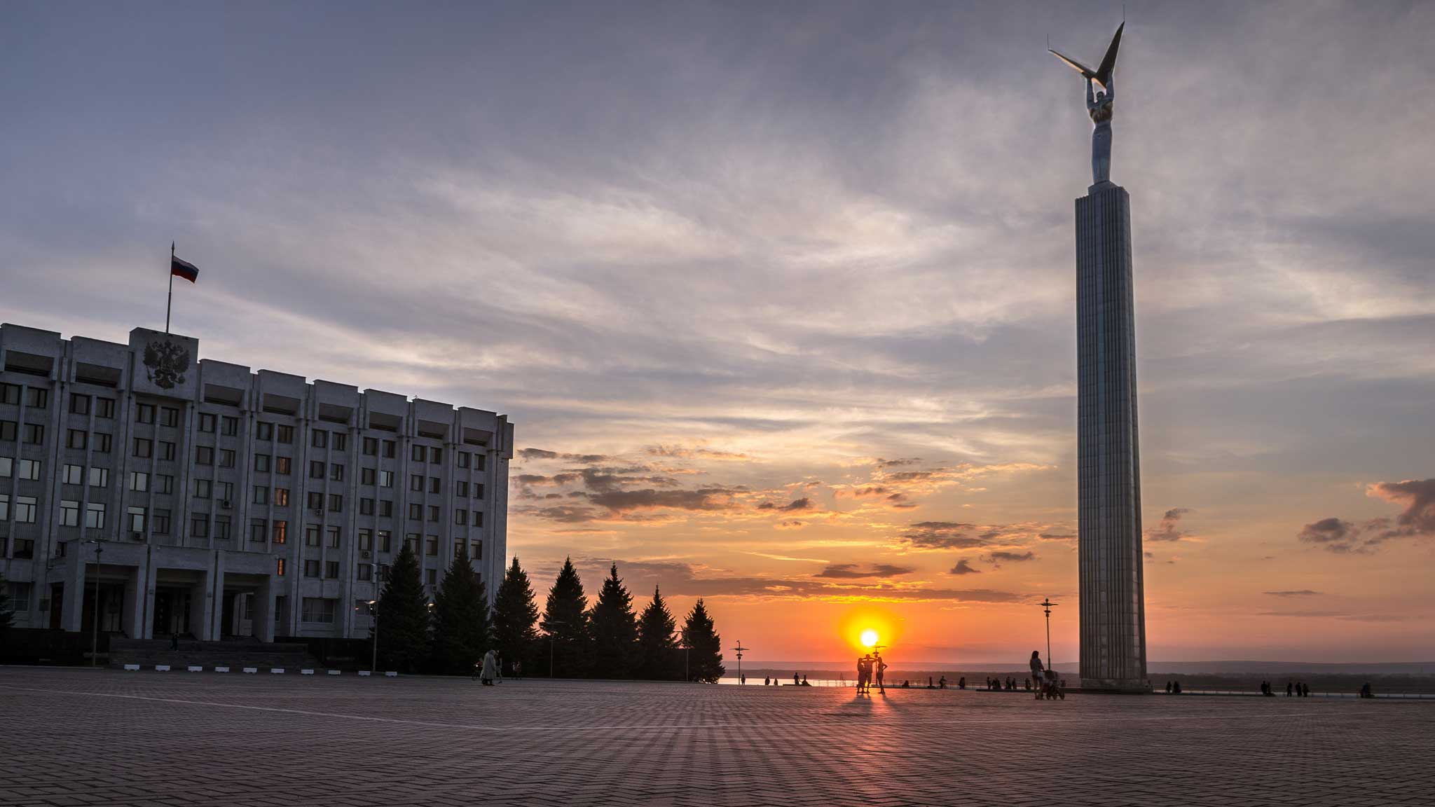 Высокий сверкающий на солнце монумент над Волгой и красивая церковь в честь Георгия Победоносца на зеленом откосе украшают площадь Славы в Самаре. Это самое узнаваемое место города, его неофициальный символ.