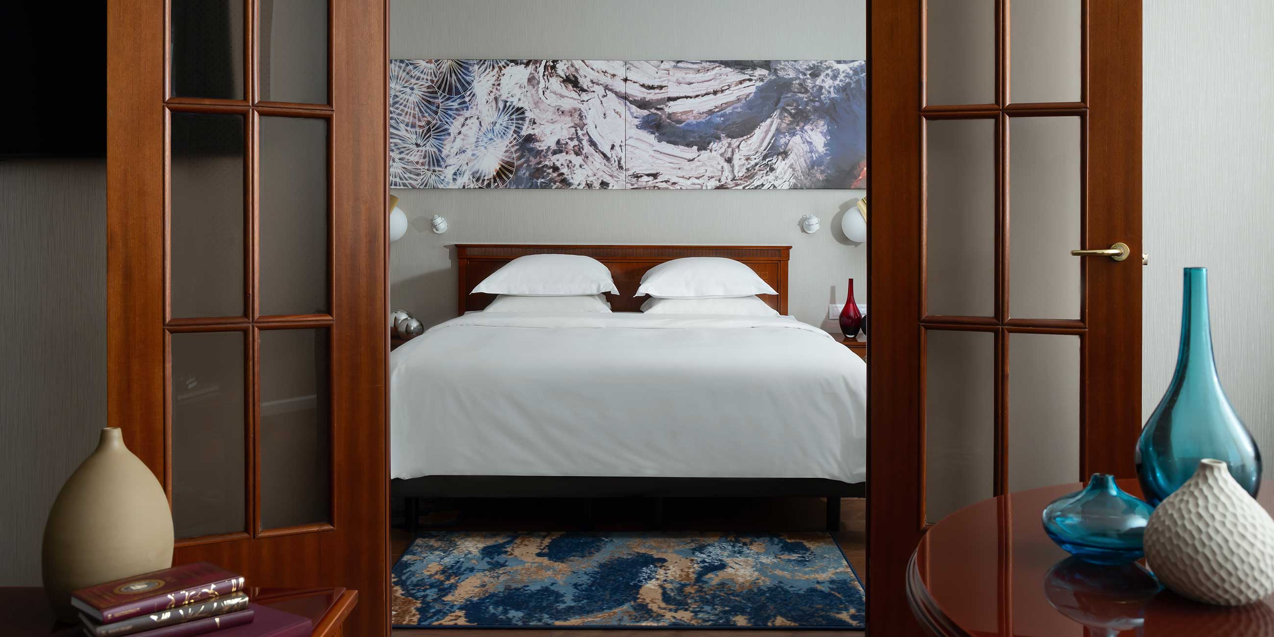 В отеле 196 просторных номеров различных категорий, в том числе президентские апартаменты. В каждом номере — кровати king size с роскошными постельными принадлежностями: комфортные матрасы, одеяла из натурального хлопка, на выбор пуховые или гипоаллергенные подушки.