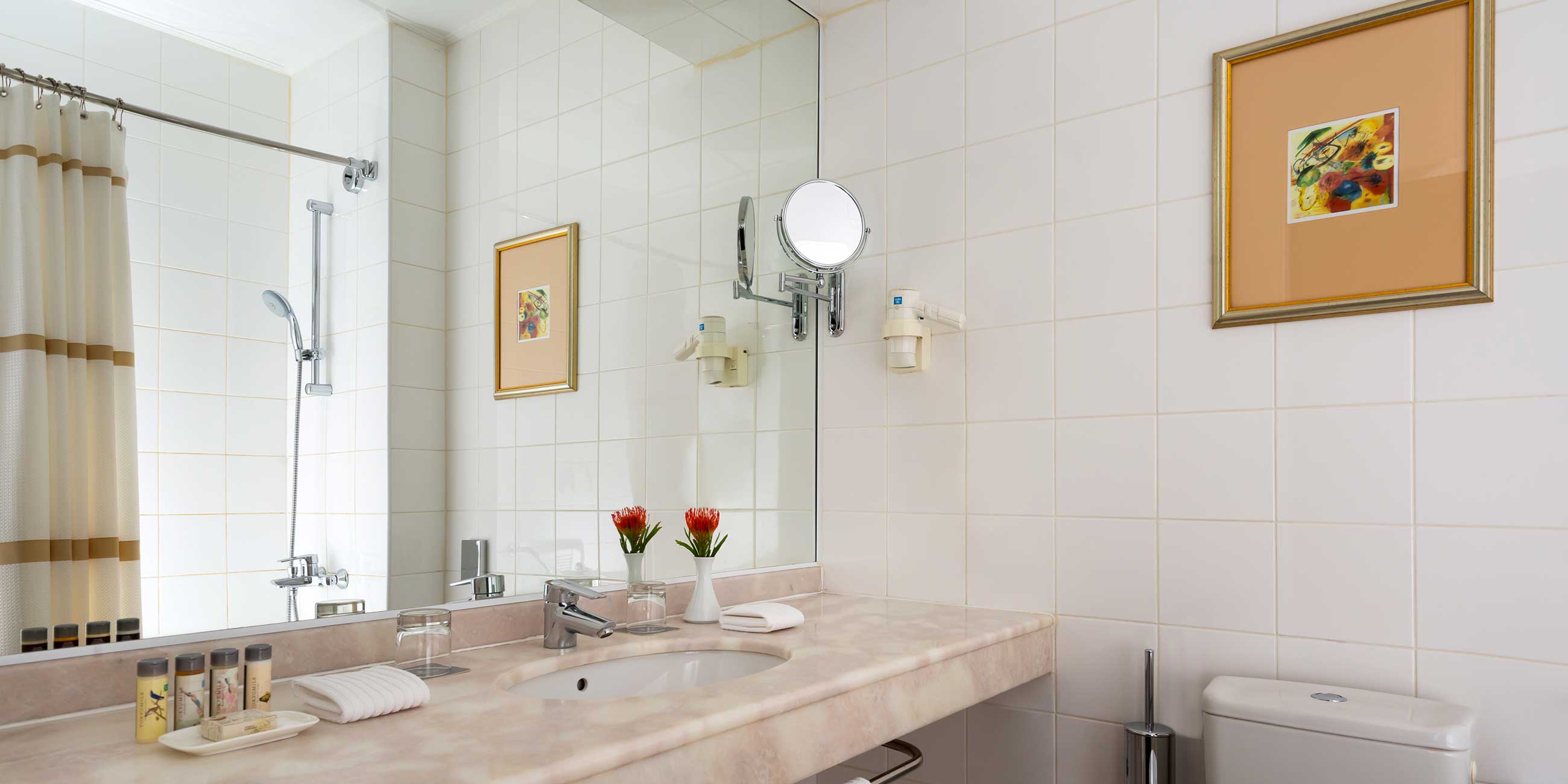 В ванных комнатах гости найдут косметику от ведущих мировых брендов: мыло, шампунь, гель для душа. При необходимости гостям предоставят бритвенные и зубные принадлежности.