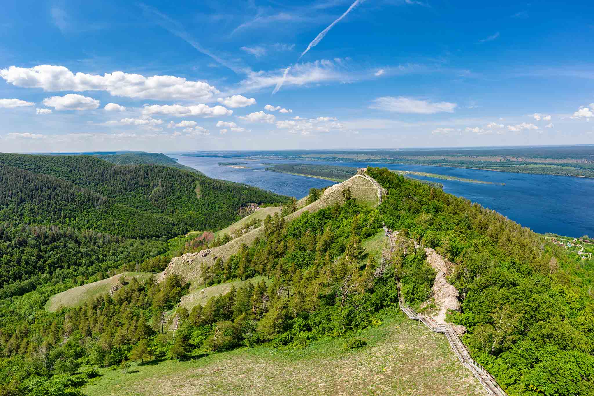 Самарская Лука — это самая большая излучина Волги (аж на 200 километров!) и национальный парк. На правом берегу великой реки возвышаются густо поросшие лесом Жигулевские горы — рельеф, который совершенно не ждешь встретить в средней полосе России. Кстати, именно Жигули дали название творению тольяттинского автопрома, а с горных вершин, куда ведут популярные туристические маршруты, виден и сам Автоград.