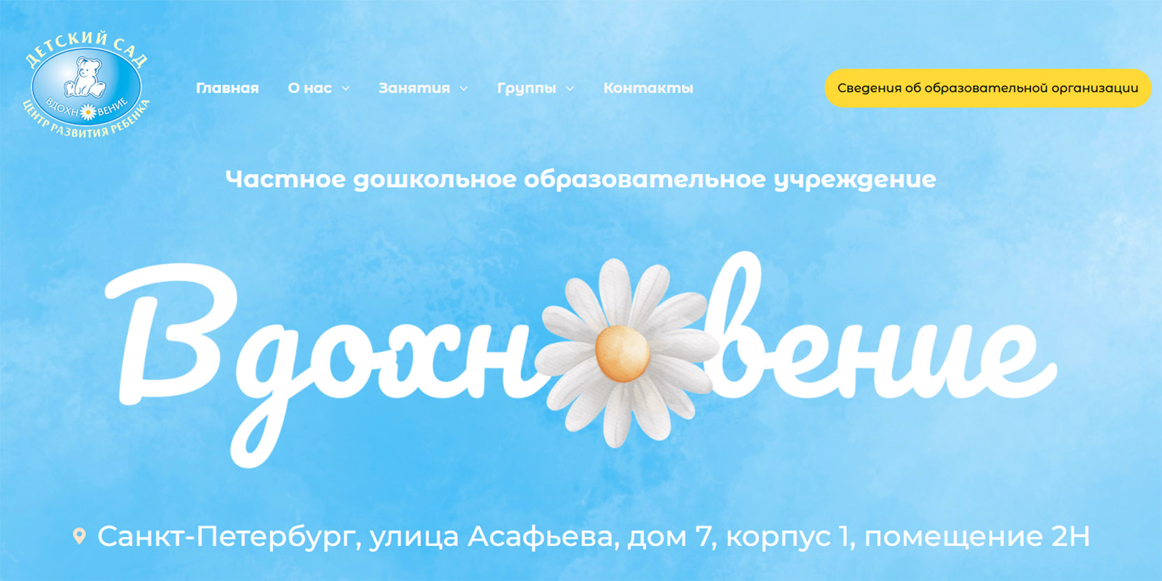 | Вдохновение | Стоимость месячного посещения — по запросу; логопед — 1300 руб./индивидуальное занятие; летние программы — от 13 000 руб./неделя |