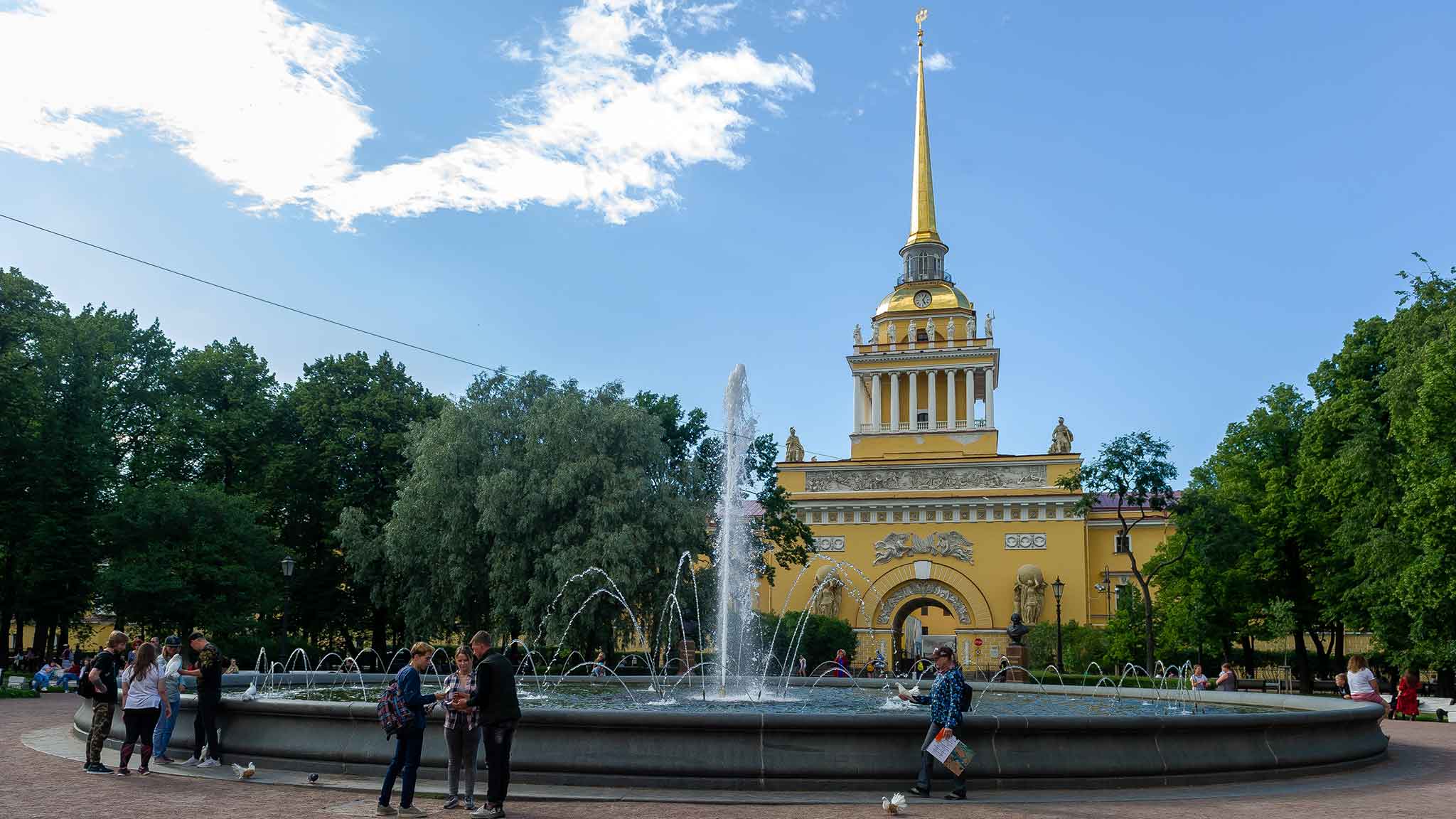 Еще одна визитная карточка Санкт-Петербурга — здание Главного Адмиралтейства. Его центральную башню украшает шпиль высотой в 72 метра, увенчанный изображением кораблика. И именно про него Пушкин писал в «Медном всаднике»: «…и светла Адмиралтейская игла». Само Адмиралтейство появилось вместе с Санкт-Петербургом – Петр Первый задумал его как судостроительную верфь. Первый корабль, созданный здесь, был спущен на воду уже в 1706 году. Сегодня же в здании Адмиралтейства находится Главное командование Военно-морского флота России.