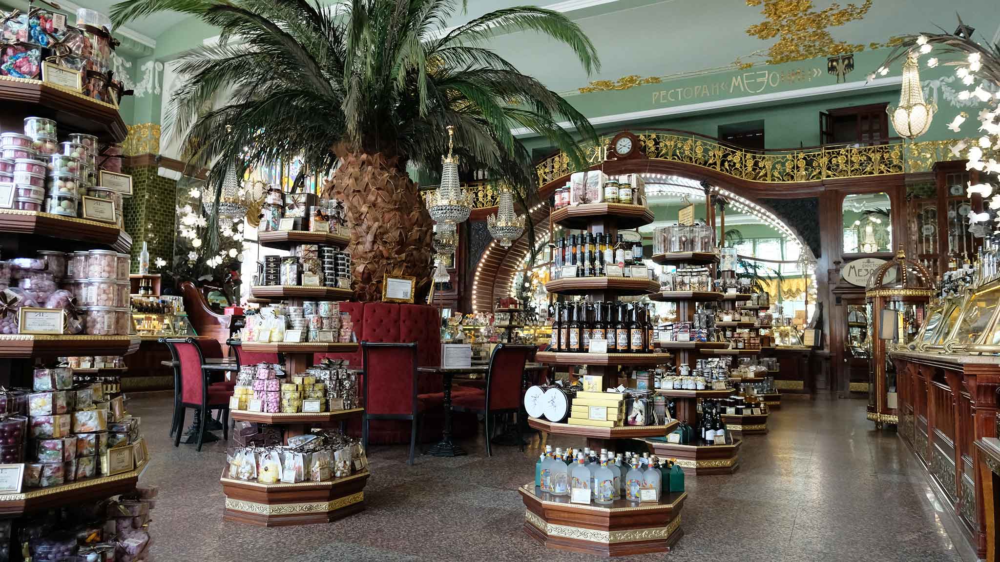 Оказавшись на углу Невского и Малой Садовой улицы, вы точно не пройдете мимо красивых витрин знаменитого «Магазина купцов Елисеевых». В историческом гастрономе продают настоящие изыски — кондитерские изделия, благородные сыры, мясные деликатесы. Сразу скажем, что позволить себе что-то там приобрести могут далеко не все. Но магазин можно посетить и как в музей — посмотреть на необычные интерьеры, зеркальные витрины, бронзовые светильники и позолоту. Окунуться в атмосферу роскоши и узнать, как выглядел первый торговый дом в дореволюционной России. А еще — послушать «волшебное» механическое пианино.