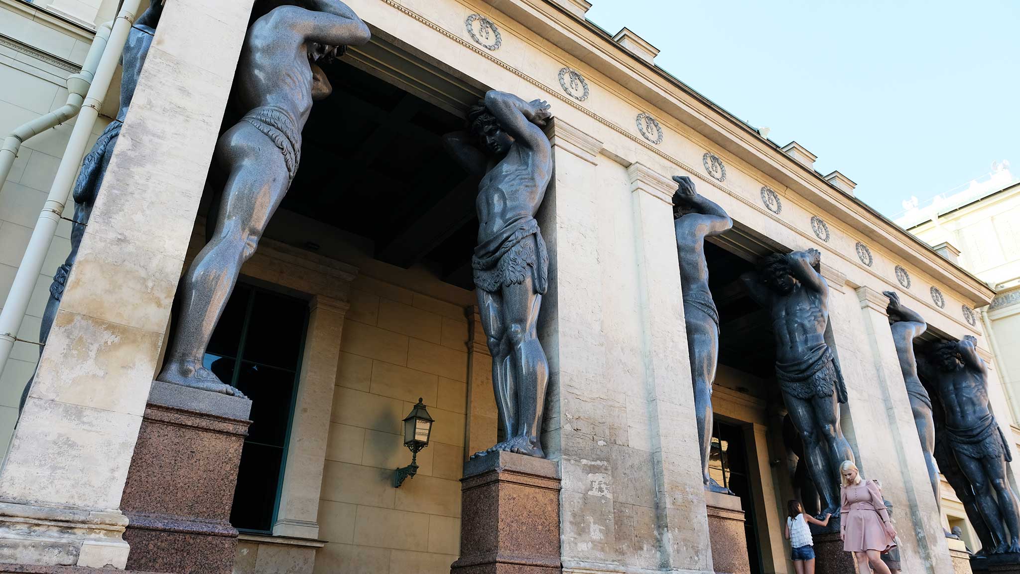 Один из символов Санкт-Петербурга — Атланты. Те самые, что «держат небо на каменных руках». Скульптуры находятся совсем рядом с Дворцовой площадью — на Миллионной улице. Свернув на нее, вы точно заметите десять могучих гранитных фигур у здания Нового Эрмитажа. У Атлантов туристы загадывают желания: считается, что если погладишь на удачу их огромные пальцы, то задуманное непременно исполнится!