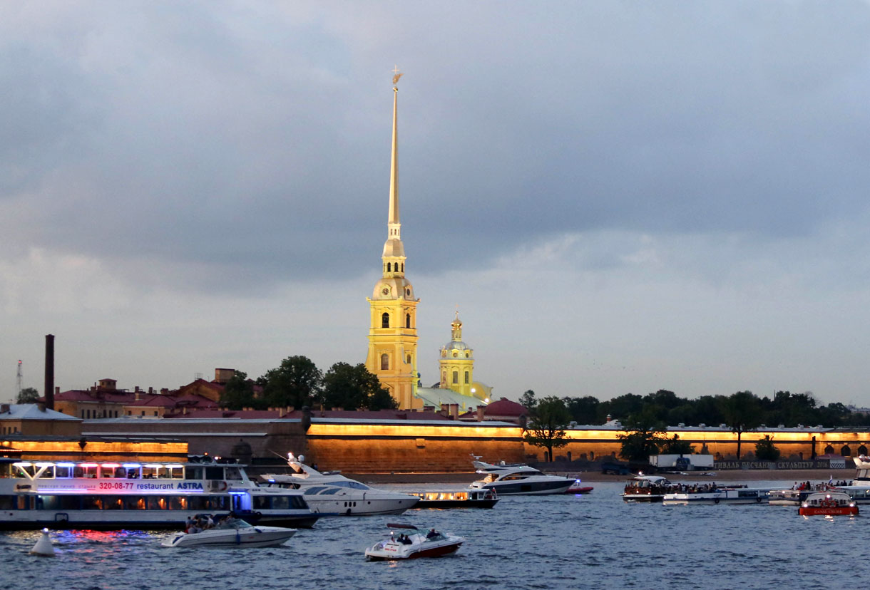Ночные экскурсии на развод мостов в Санкт-Петербурге в 2025 году начинаются обычно после полуночи и длятся от полутора часов. Но все зависит от маршрута и программы. Классическая экскурсия включает в себя водную прогулку прямо по Неве, над которой и разводятся мосты. Есть более длинные маршруты, которые захватывают примыкающие реки и каналы. А есть экскурсии с выходом прямо в Финский залив. Можно выбрать двух- или трехпалубный теплоход со смотровой площадкой и закрытой зоной — если боитесь ветра или прохладной погоды. А в теплые ночи отличный вариант — маленькие теплоходы с открытой палубой. Попасть на экскурсию можно на любых причалах и пристанях, которыми усыпан весь центр города — на Дворцовой, Английской, Университетской, Адмиралтейской набережных, а также на набережных Мойки и Фонтанки. Оплатить поездку можно там же — стоит удовольствие от 800 рублей на человека, а детям до 5 лет обычно положен бесплатный билет.