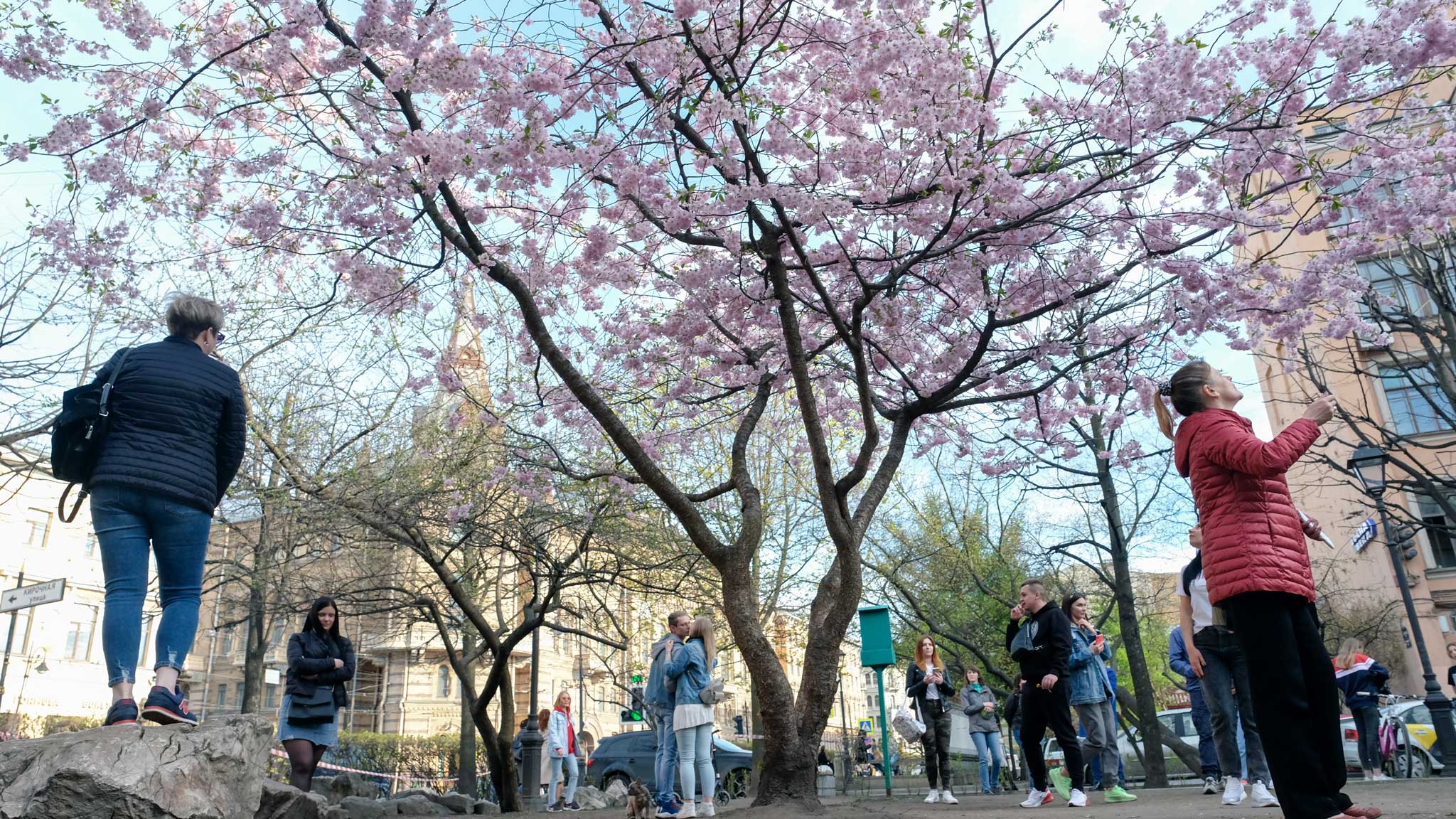 Наблюдать за тем, как цветет сакура, любят не только в Японии, откуда она родом, но и в Санкт-Петербурге. Ее пышное цветение так манит петербуржцев и гостей Северной столицы, что они с нетерпением из года в год ждут наступления весны. Ведь именно в это время расцветает пышное вишневое дерево. Цветут вишневые сады недолго, в течение одной недели. Но, как отмечают в комитете по благоустройству Санкт-Петербурга, лепесточки могут опасть даже через пару часов после окончательного раскрытия бутонов.