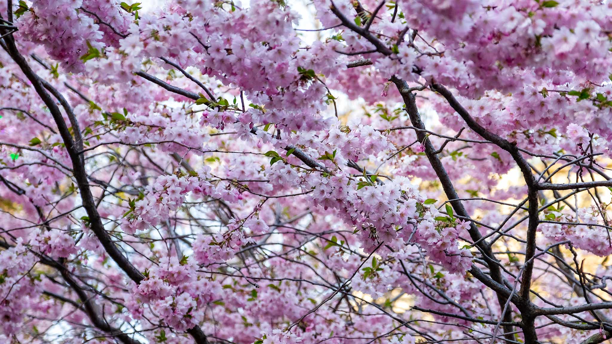 Но это не единственные места, где цветут японские деревья. Нежно-розовое растение украшает и другие сады и парки города: