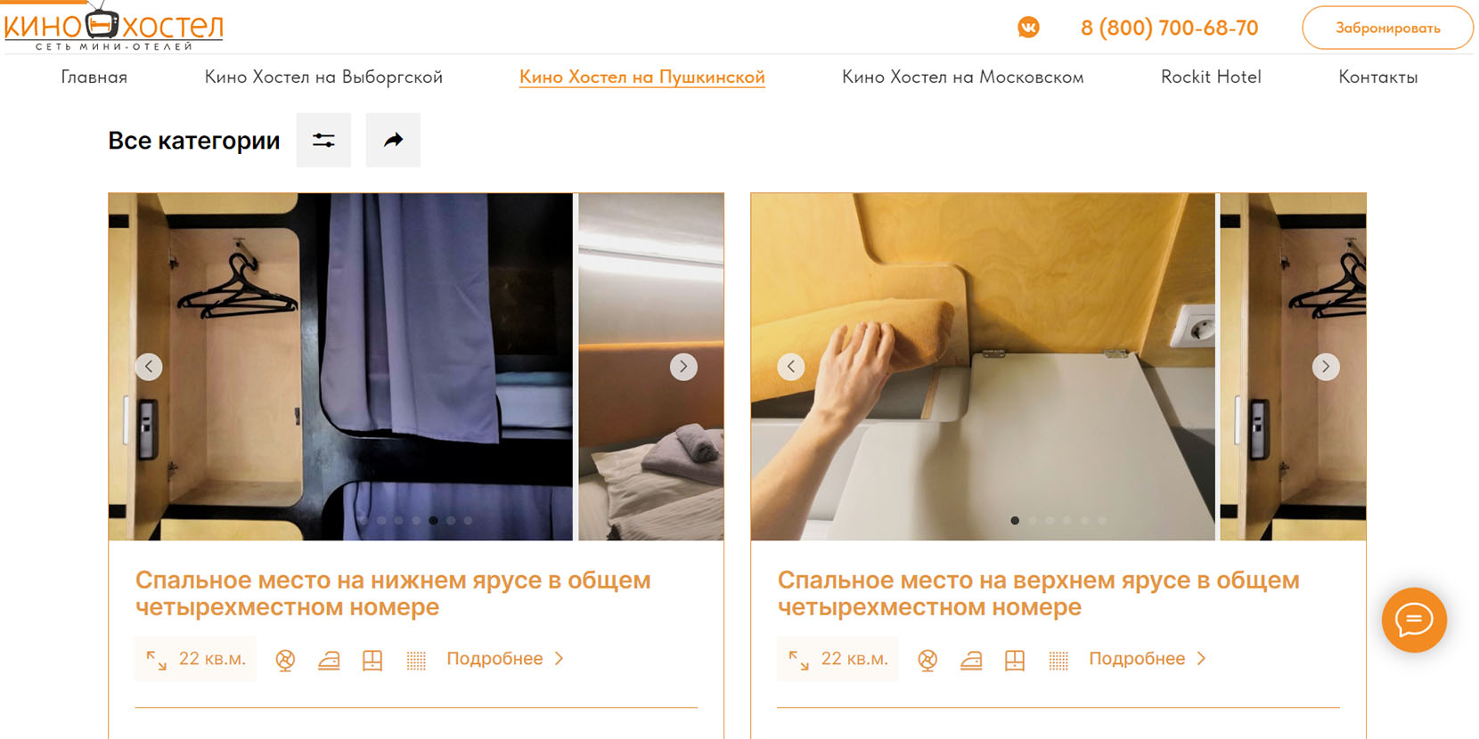 | Койко-место в капсульных хостелах | От 800 руб. |