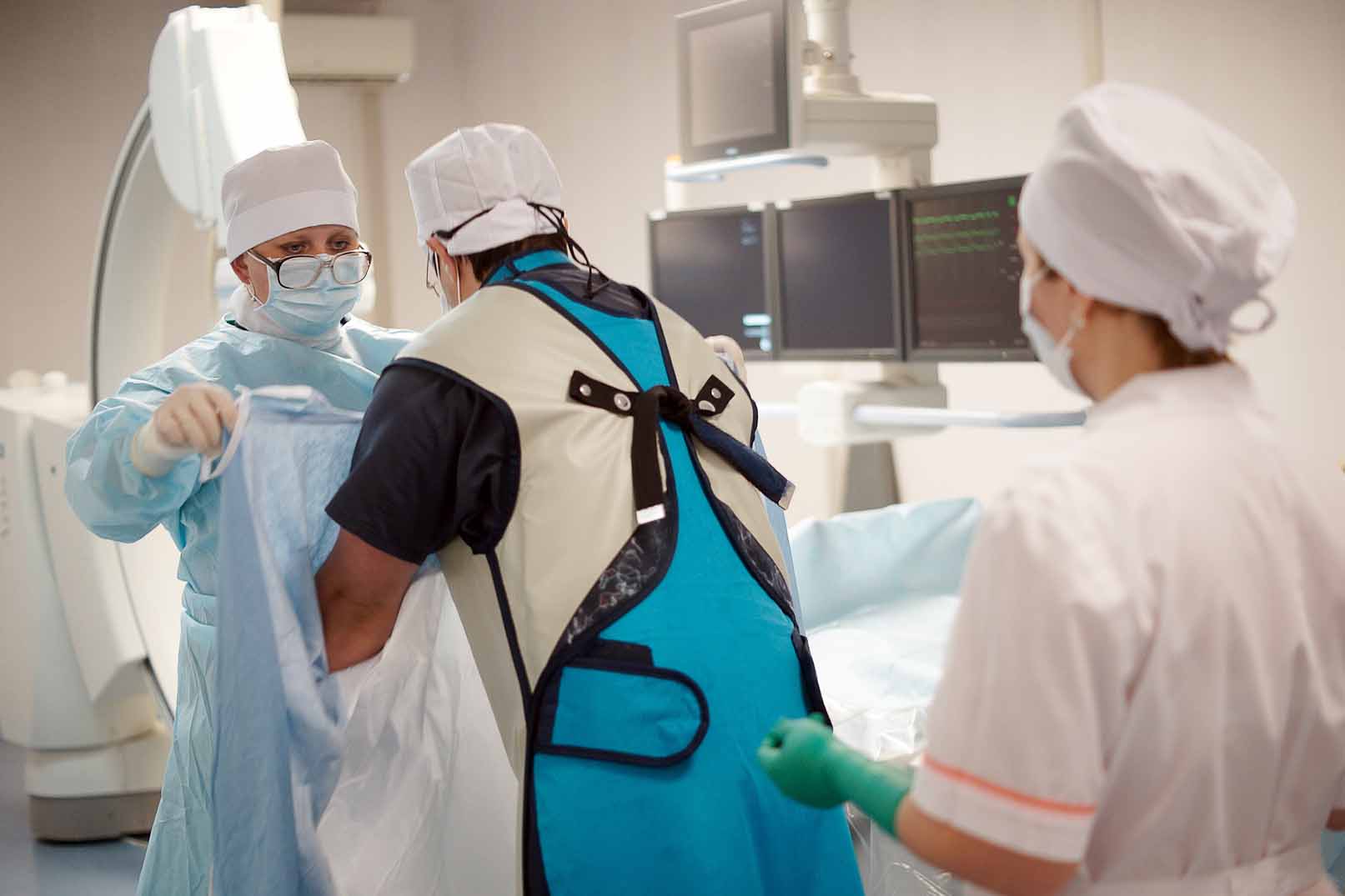 Есть отделение кардиохирургии, где проводят сложнейшие операции с применением миниинвазивных технологий. Например, шунтирование коронарных артерий на работающем сердце, удаление опухолей, реконструктивную и пластическую хирургию клапанов сердца и другие. Помощь здесь может получить любой гражданин России по полису ОМС (с направлением из поликлиники), по квоте или на платной основе.