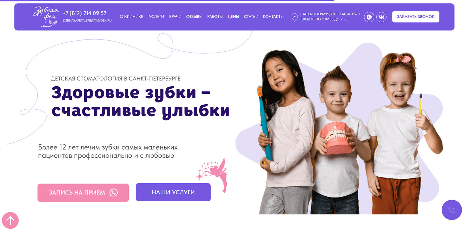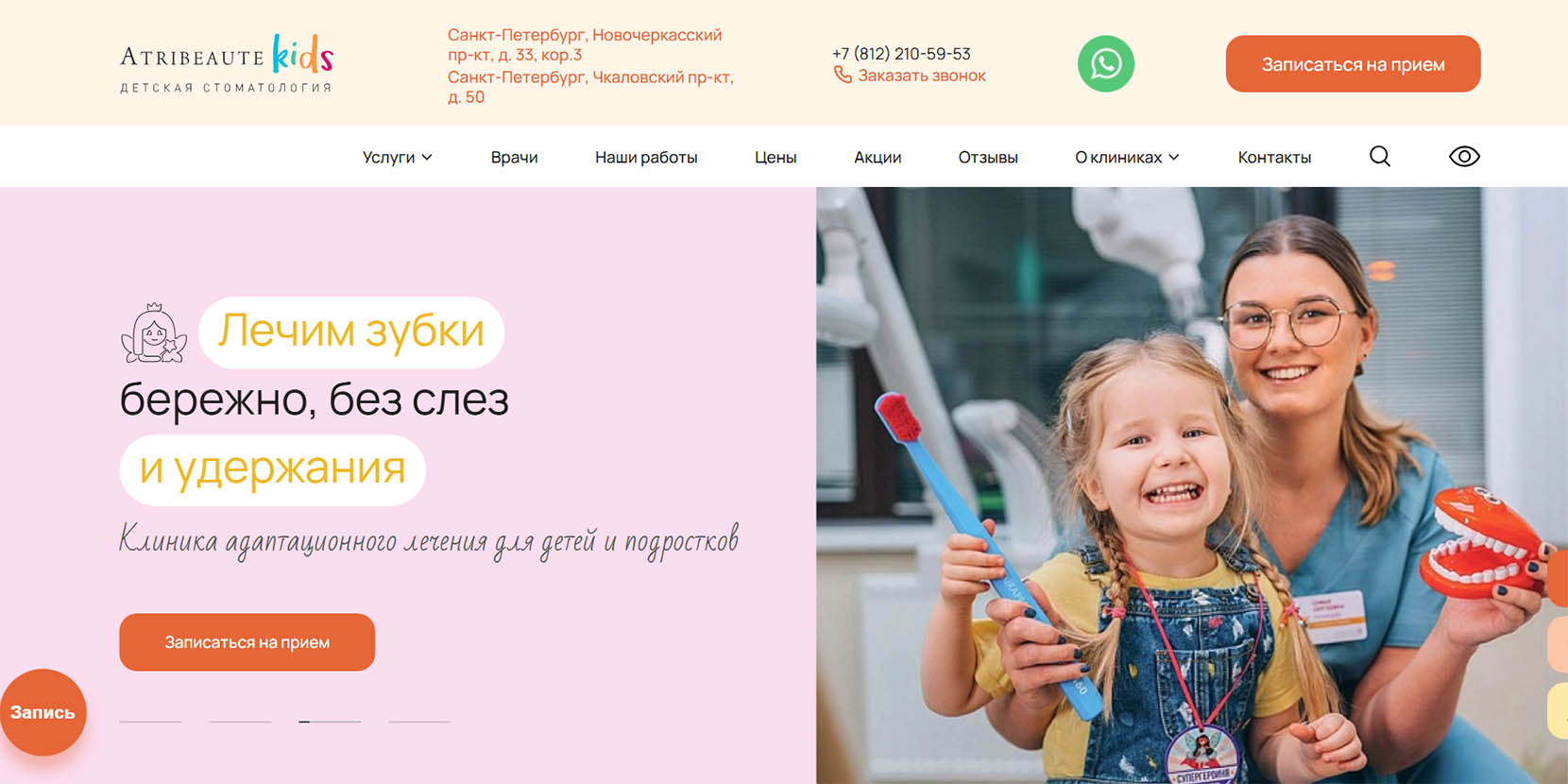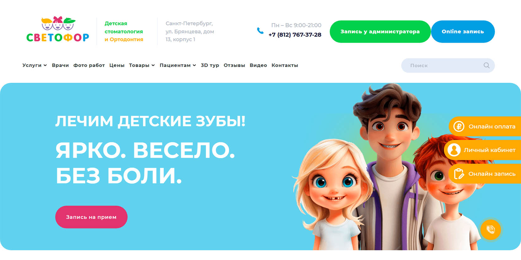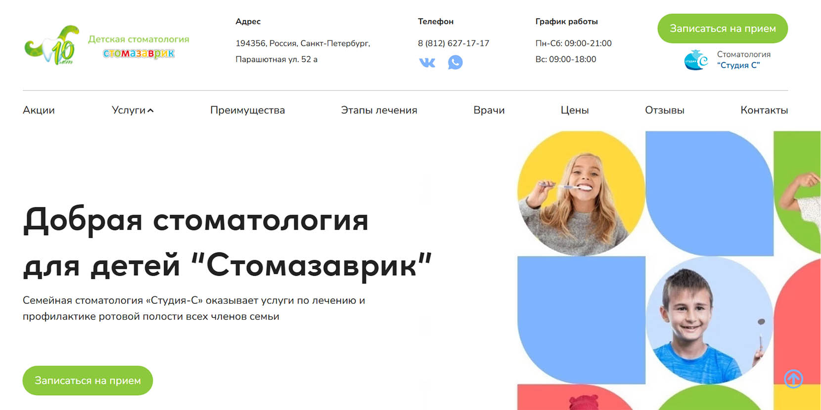 «Ярко, весело и без боли» — под таким девизом специалисты клиники лечат детские зубки и создают красивые улыбки. За 10 лет работы стоматологии здесь вылечили более 13 тысяч молочных и постоянных зубов. Детские и подростковые стоматологи, ортодонты и хирурги готовы взяться за любую проблему и создать комфортную для детей обстановку. В игровой зоне пациенты заняты в ожидании приема, а во время лечения могут смотреть мультфильмы. В конце процедур ребята получают приз за храбрость.