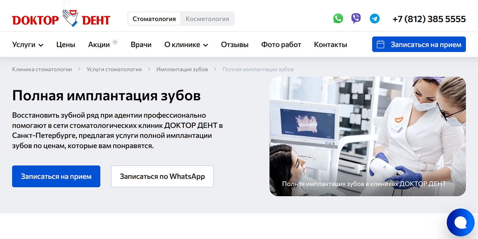 Указаны средние цены на имплантацию зубов в стоматологиях Санкт-Петербурга в 2026 г.