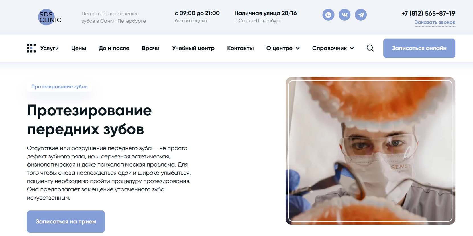 Перед протезированием необходимо вылечить зубы и убрать любые воспаления мягких тканей. Поэтому в SDS Clinic пациентам оказывают квалифицированную помощь: лечение под микроскопом и во сне, компьютерную томограмму, интраоральный 3D-сканер 3Shape. Когда челюсть будет готова к проведению протезирования, клиенту предлагают разные типы временных и постоянных конструкций, объясняют правила эксплуатации и ухода. В стоматологии есть услуга по починке протеза. Клиника работает с 1996 года.
