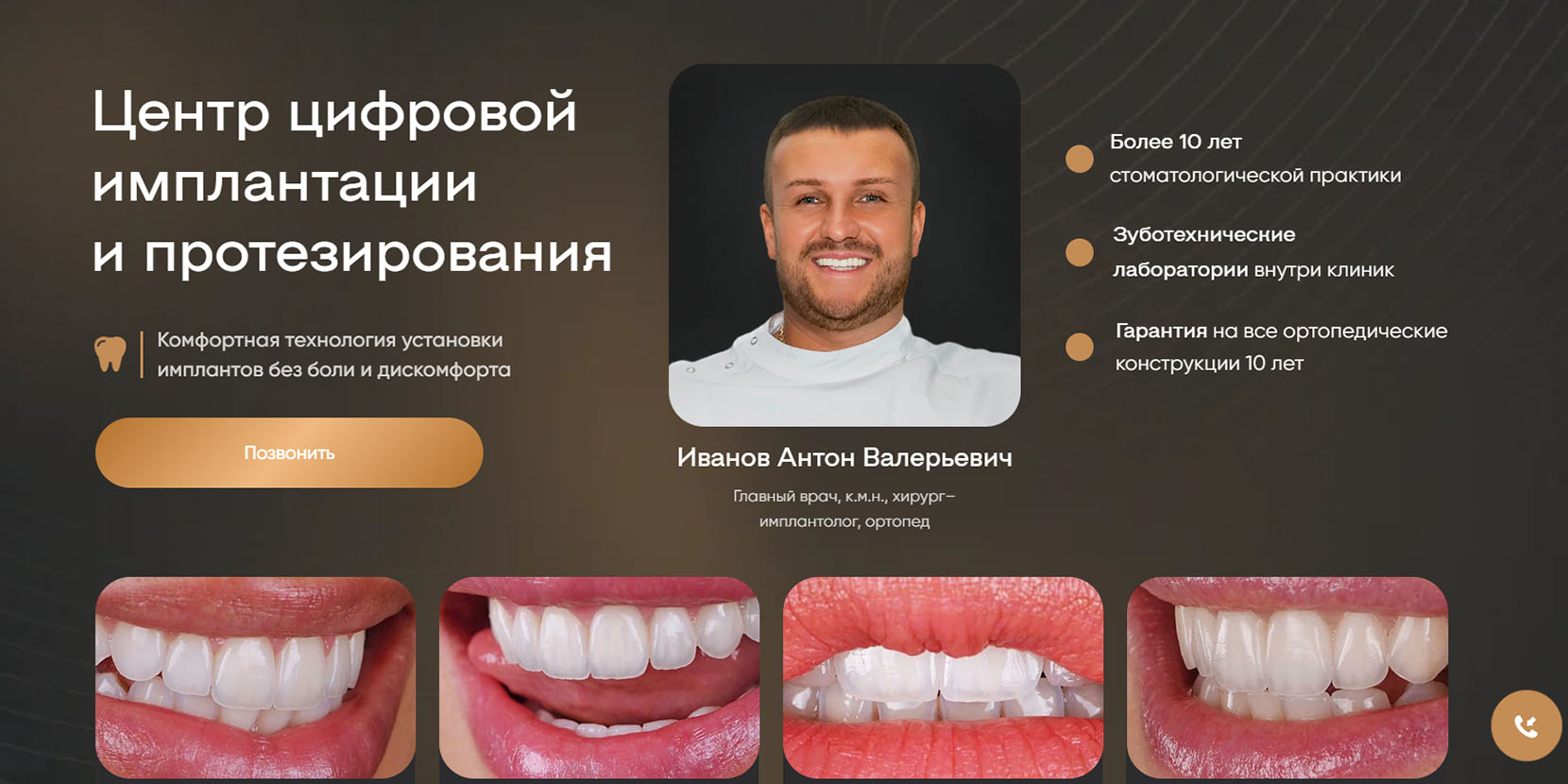 Центр экспертной стоматологии премиум-класса, предлагающий инновационные решения в сфере имплантации и протезирования. В штате 15+ специалистов, которые готовы решить сложные ортопедические случаи, в том числе исправлять чужие врачебные ошибки. При необходимости проводят междисциплинарный консилиум. Большое вниманием уделяют психологическому комфорту пациента. Предлагают протезирование с опорой на имплантах с использованием различных конструкций — коронки, мосты, покрывные протезы.