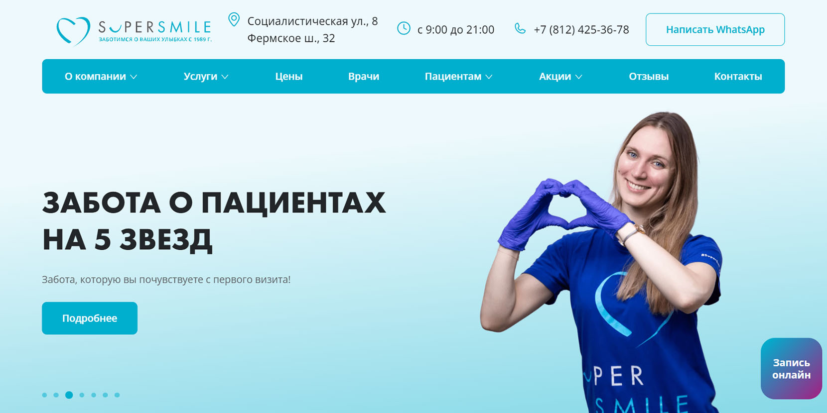 Клиника работает с 2020 года. Протезирование — одно из ведущих направлений. Каждому пациенту здесь подбирают лечение с учетом всех особенностей здоровья полости рта и общего состояния. Предлагают съемное (пластинчатые и бюгельные протезы), несъемное протезирование, протезирование на имплантах. Используют цифровую технологию моделирования зубов. Гарантия на лечение в клинике 5 лет.