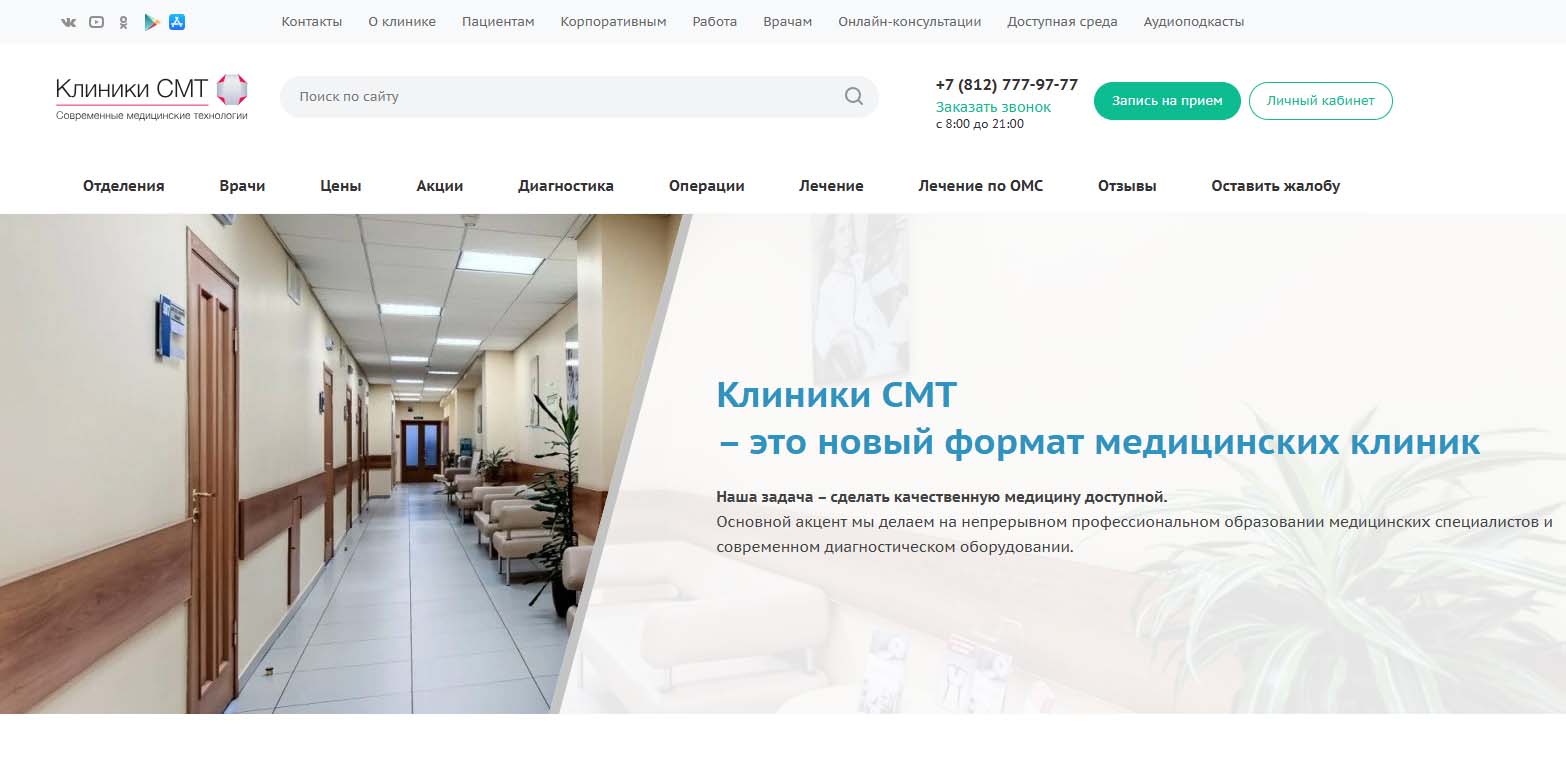 Сайт и соцсети | smclinic-spb.ru, ВК, ОК |