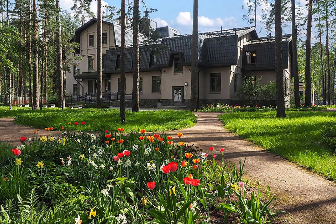 Пансионат расположен в курортном поселке Комарово. Пациентов здесь окружает не только забота квалифицированного медицинского персонала, но и свежий воздух и живописный вид. Отдел реабилитации оснащен новейшим оборудованием. Технологии позволяют отследить эффективность и скорректировать индивидуальную программу восстановления, куда кроме ЛФК и медицинских процедур входят арт-терапия, эрготерапия, ежедневные прогулки и занятия со специалистом по социальной адаптации и логопедом.