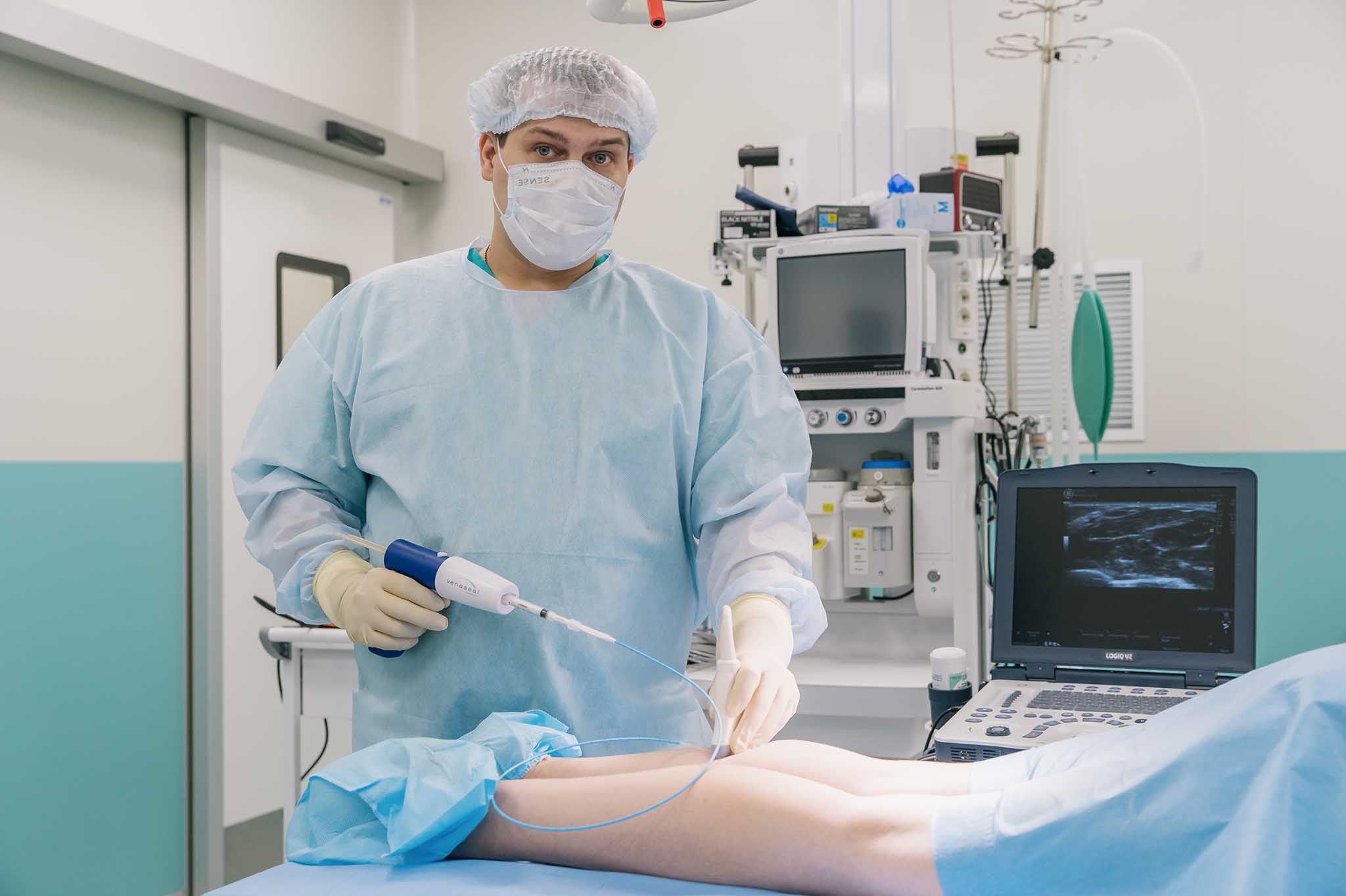 В отделении представлены все актуальные методы терапии: экспертная УЗ-диагностика, клеевая облитерация VenaSeal, эндовазальная лазерная и радиочастотная облитерация, склеротерапия и хирургическое лечение. Используется премиальный сосудистый лазер Cutera. В штате работает сертифицированный тренер по данному оборудованию.