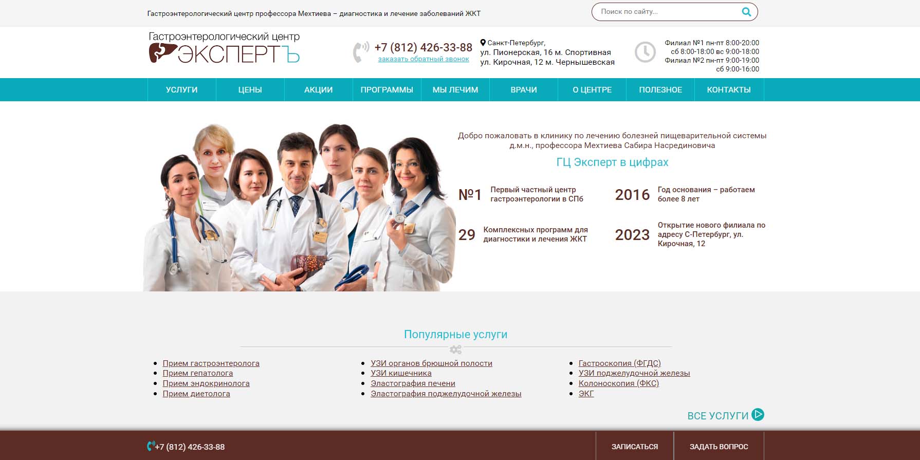 Медицинское учреждение создано на базе петербургской клиники, которая являлась клинической базой Северо-Западного медицинского университета имени Мечникова. На протяжении 10 лет занимаются диагностикой и лечением пациентов с различными заболеваниями желудочно-кишечного тракта. Ведущие специалисты с научными степенями в области медицины готовы работать с клиническими случаями высокого уровня сложности.