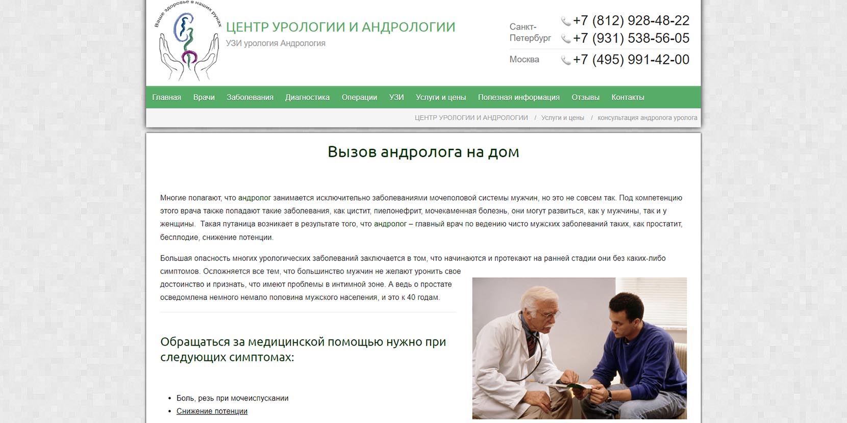 Урология — деликатная сфера, поэтому если чувствуете себя неуютно в клинике или на консультации у врача, лучше поискать другой вариант. Доверяйте своей интуиции: лечение должно проходить в комфортной для пациента обстановке, а не в напряженной.