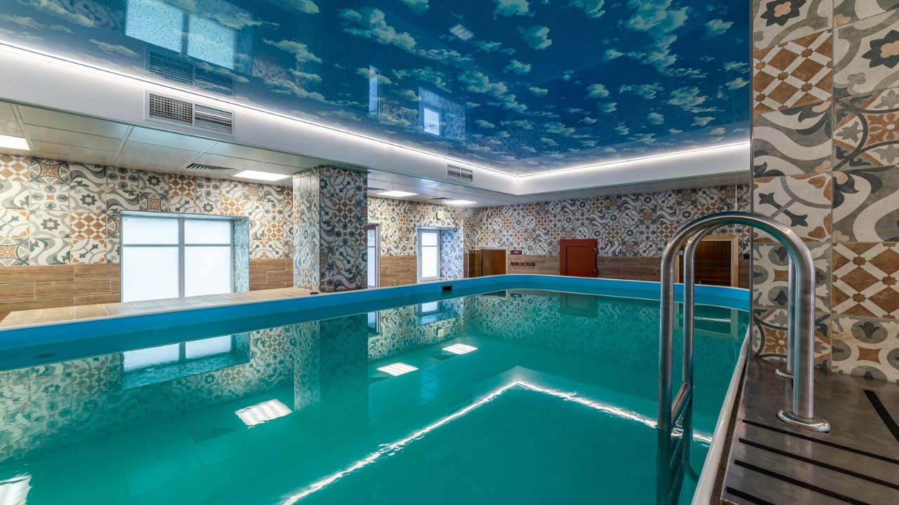 Размер комплекса впечатляет — 4 этажа, где предлагают разные банные, спа и развлекательные услуги. На первом этаже расположены первый разряд, сауны, парные, холодная купель и бассейны. Этажом выше гостеприимно в стречает бар-ресторан, есть выход на панорамный балкон. Третий этаж — высший разряд, атриум и бар, четвертый — опять сауны, бассейны, баня на дровах и солярий.