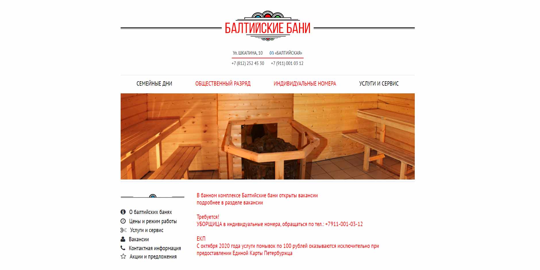 Находятся в 100 метрах от Балтийского вокзала. Работает отделение высшего разряда с бассейном 16 на 9 метров и 4 парными, люкс и первый разряд, есть индивидуальные номера. Предлагают услуги профессиональных массажистов и парильщиков. Понедельник и среда определены как семейные дни посещений.