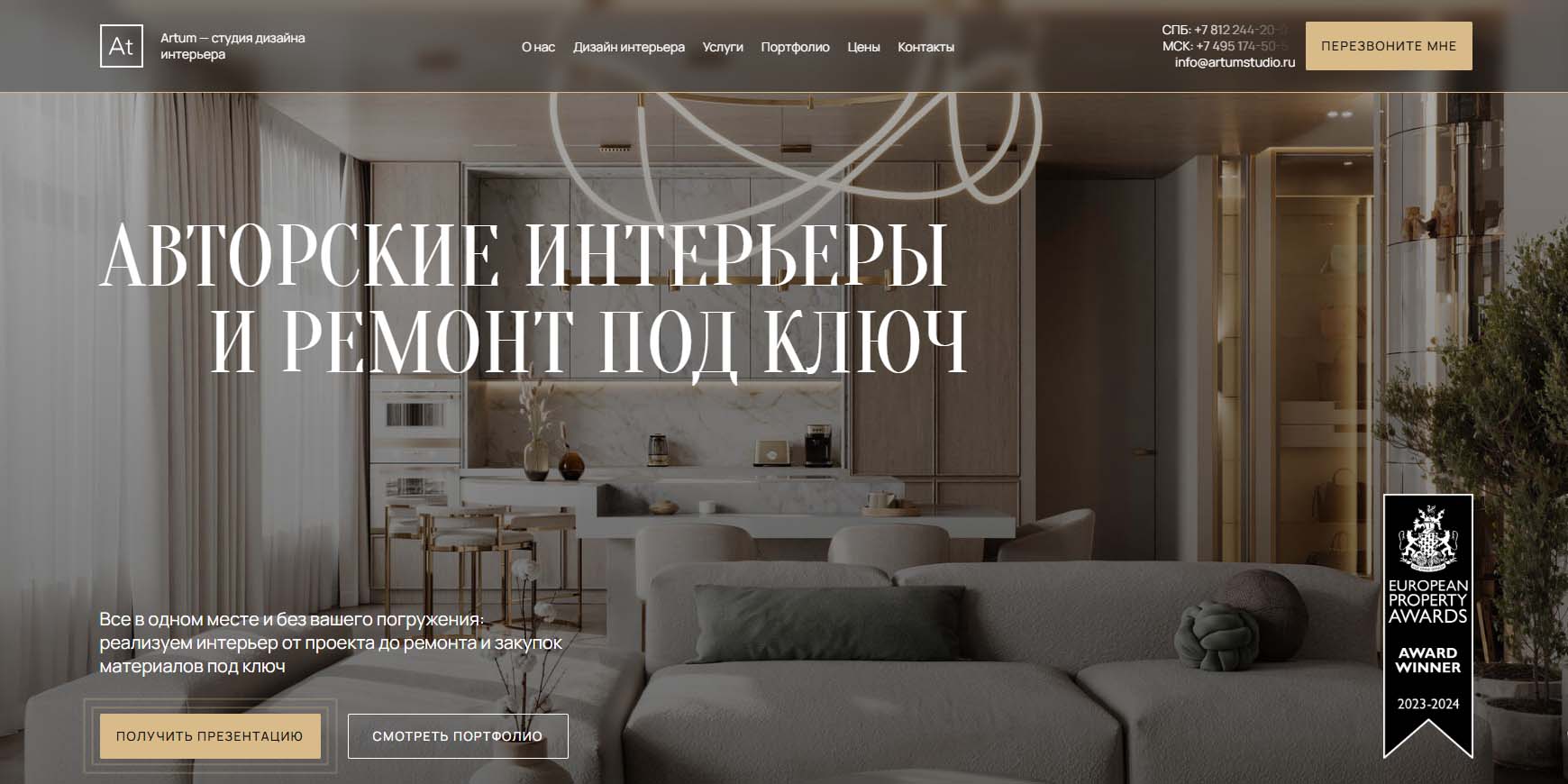 Компания берёт на себя комплексное решение всех задач: разработку дизайн-проекта, закупку и доставку необходимых материалов, отделку, контроль качества выполнения работ на каждом этапе и финальную уборку после ремонта. Объект сдаётся под ключ.