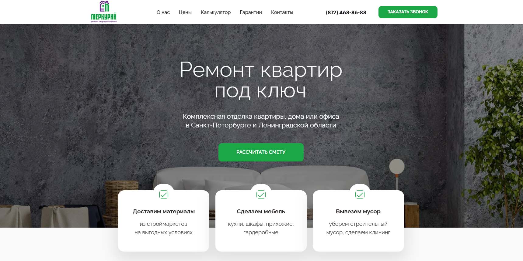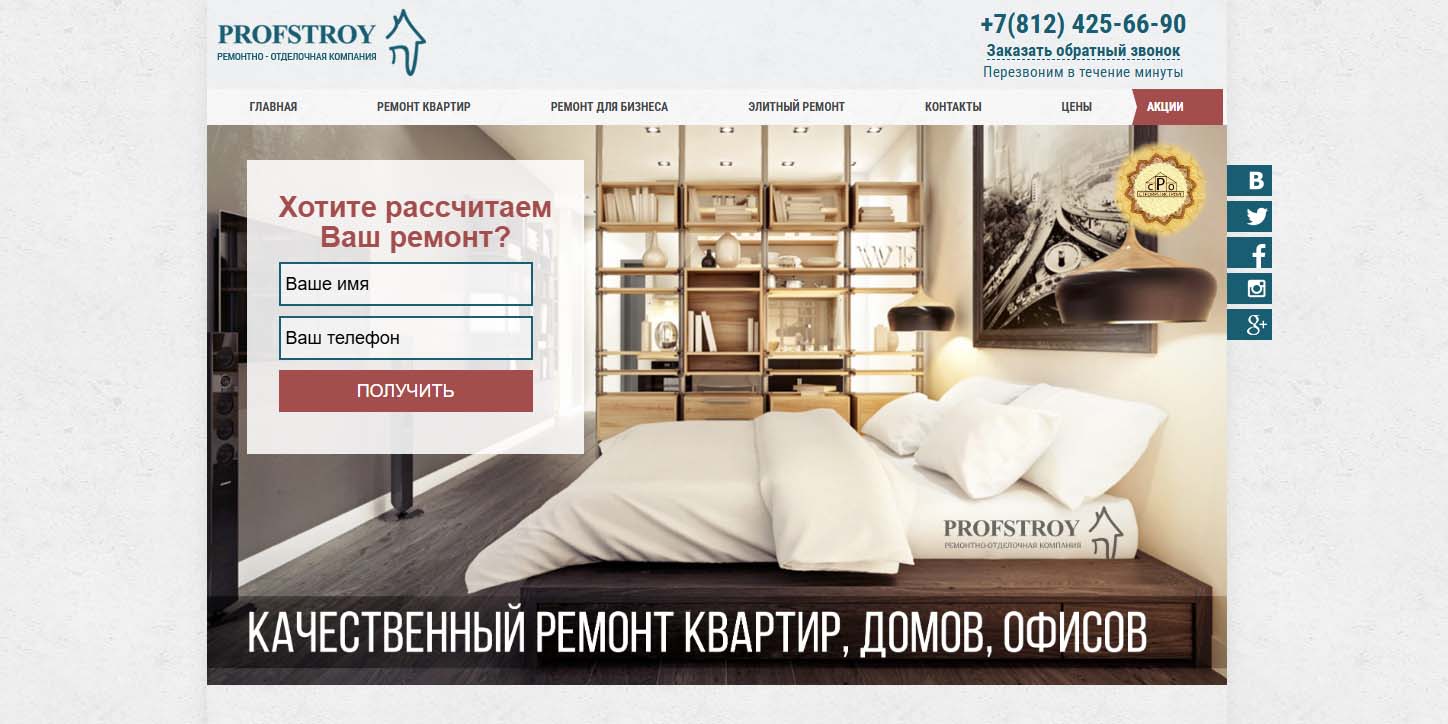Работает в Санкт-Петербурге с 2000 года. Фирма предоставляет полный спектр профессиональных услуг по квалифицированному ремонту любых помещений — домов, квартир, коммерческих и складских помещений, загородных домов, гостиниц и бизнес-центров. По необходимости ремонт может быть выполнен частично или с нуля под ключ. Есть большой штат профессиональных специалистов разного профиля и квалификации. Проводят работы аккуратно и в срок, учитывают требования заказчика. Гарантируют, что сдают объект чистым и не оставляют после себя мусора.