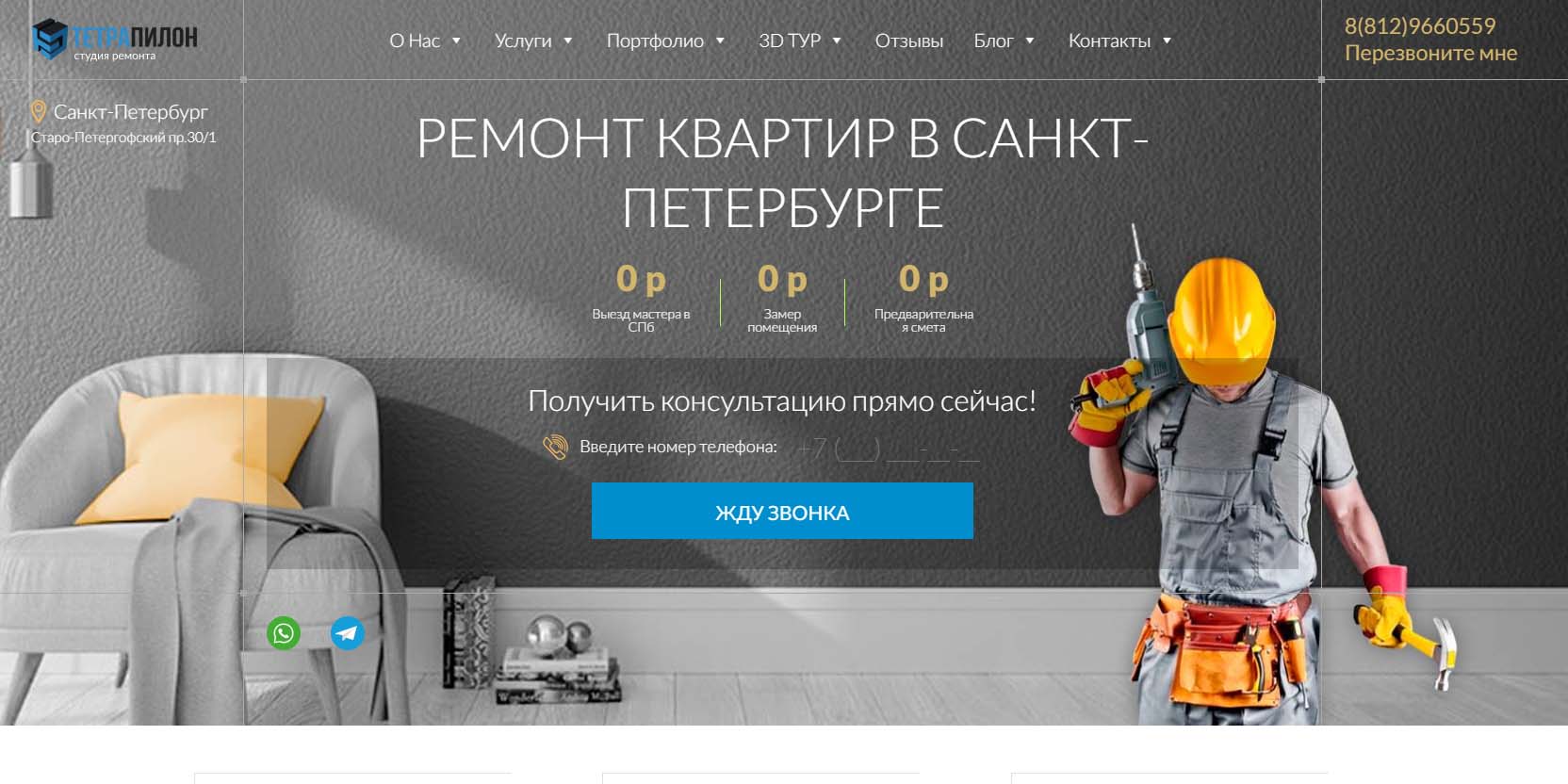 Работает с 2014 года и за это время выполнили более 260 проектов в Санкт-Петербурге. Компания специализируется на косметическом, капитальном и дизайнерском ремонте, а также на отдельных видах отделки квартир и помещений, ремонте ванных комнат и санузлов. В команде — дипломированные дизайнеры, архитекторы и проектировщики. Помимо самих ремонтных услуг, компания берет на себя закупку материалов и изготавливает мебель на заказ.