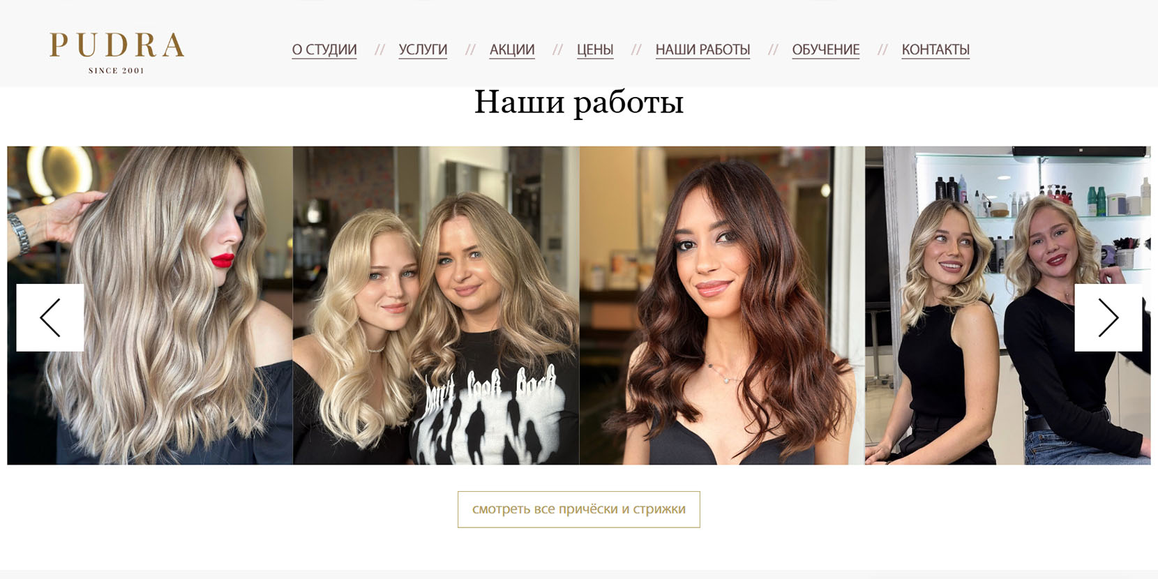 Сеть салонов красоты «Пудра» работает с 2001 года. Несколько лет назад начали развивать свою образовательную платформу, где готовят парикмахеров-колористов с учетом всех актуальных тенденций рынка. Помимо парикмахерских предлагают услуги маникюра и педикюра, запись к визажисту и косметологу, наращивание ресниц, ламинирование бровей и ресниц, перманентный макияж.