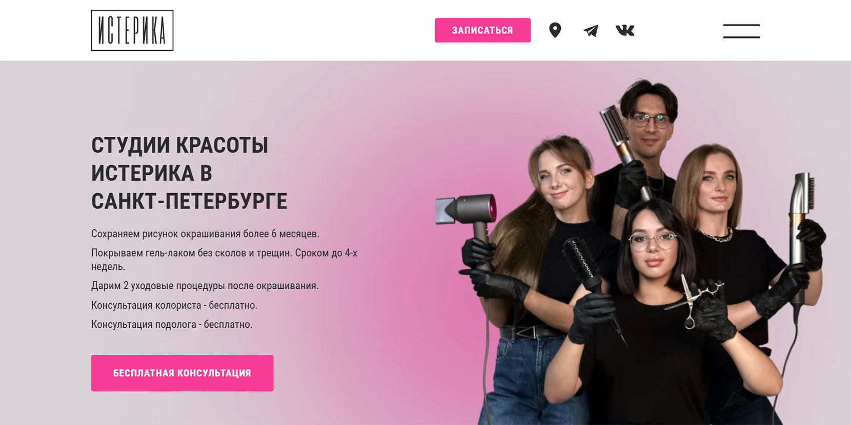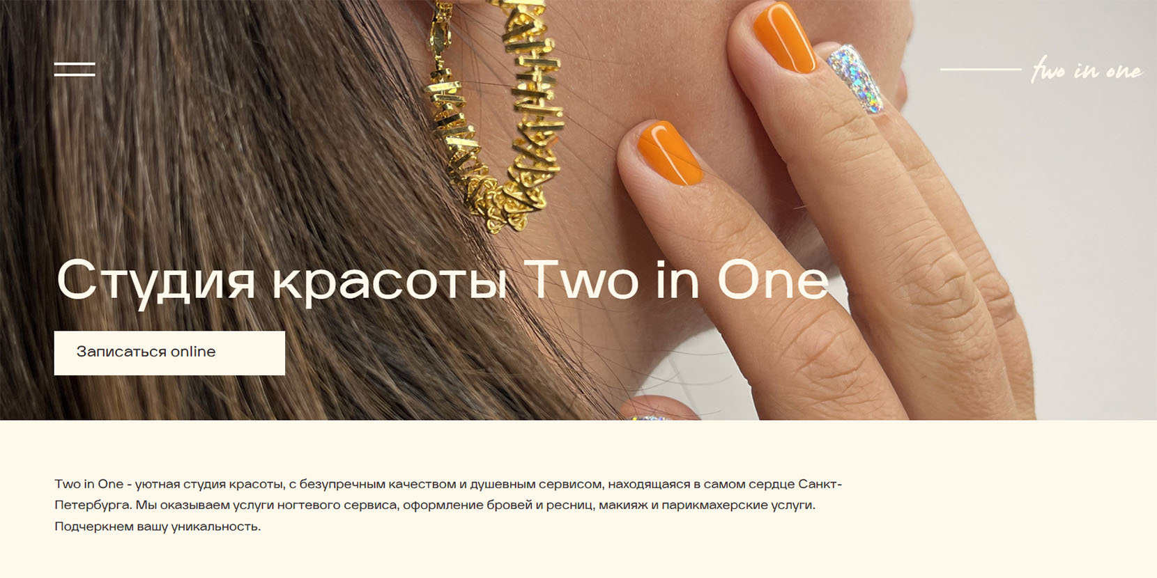 Два салона красоты в центральном районе Санкт-Петербурга, 15 лет непрерывной работы, более 20 квалифицированных мастеров и почти 8,5 тыс. постоянных клиентов. Есть опция экстренных сборов — стоит предупредить заранее и мастера студии соберут вас на мероприятие в четыре руки. Спектр услуг широкий: от окрашивания и стрижек до маникюра и уходовых процедур для тела.