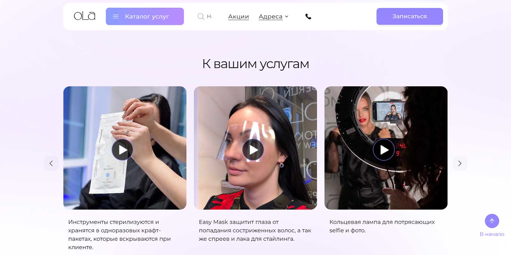 Одна из крупнейших сетей студий красоты в Санкт-Петербурге. Под брендом OLA работают 16 салонов во всех районах Северной столицы — это более 100 мастеров, среди которых призеры и победители международных конкурсов. Спектр услуг, который предоставляют клиентам, огромный — стрижки, укладки, окрашивание, ногтевой сервис, макияж, оформление бровей и ресниц, косметология, спа-процедуры и многое другое.