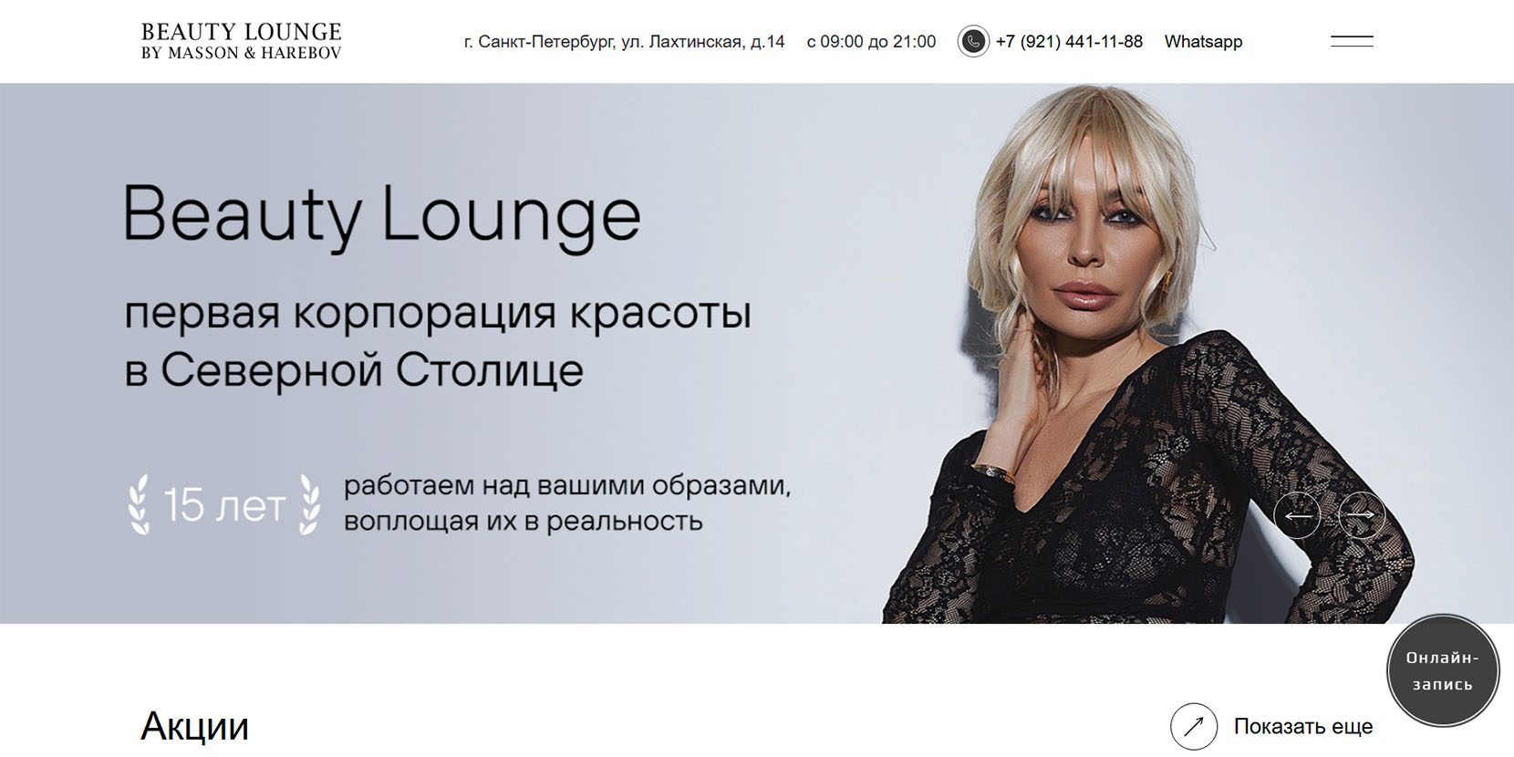 Салону красоты уже 24 года и здесь трудятся признанные мастера — одни из лучших в своей сфере. Клиентам предлагают более 150 видов услуг, есть возможность записаться к нескольким мастерам одновременно и сэкономить время. Здесь работают с проверенными брендами косметики. Среди услуг — парикмахерский зал, ногтевой сервис, подология.