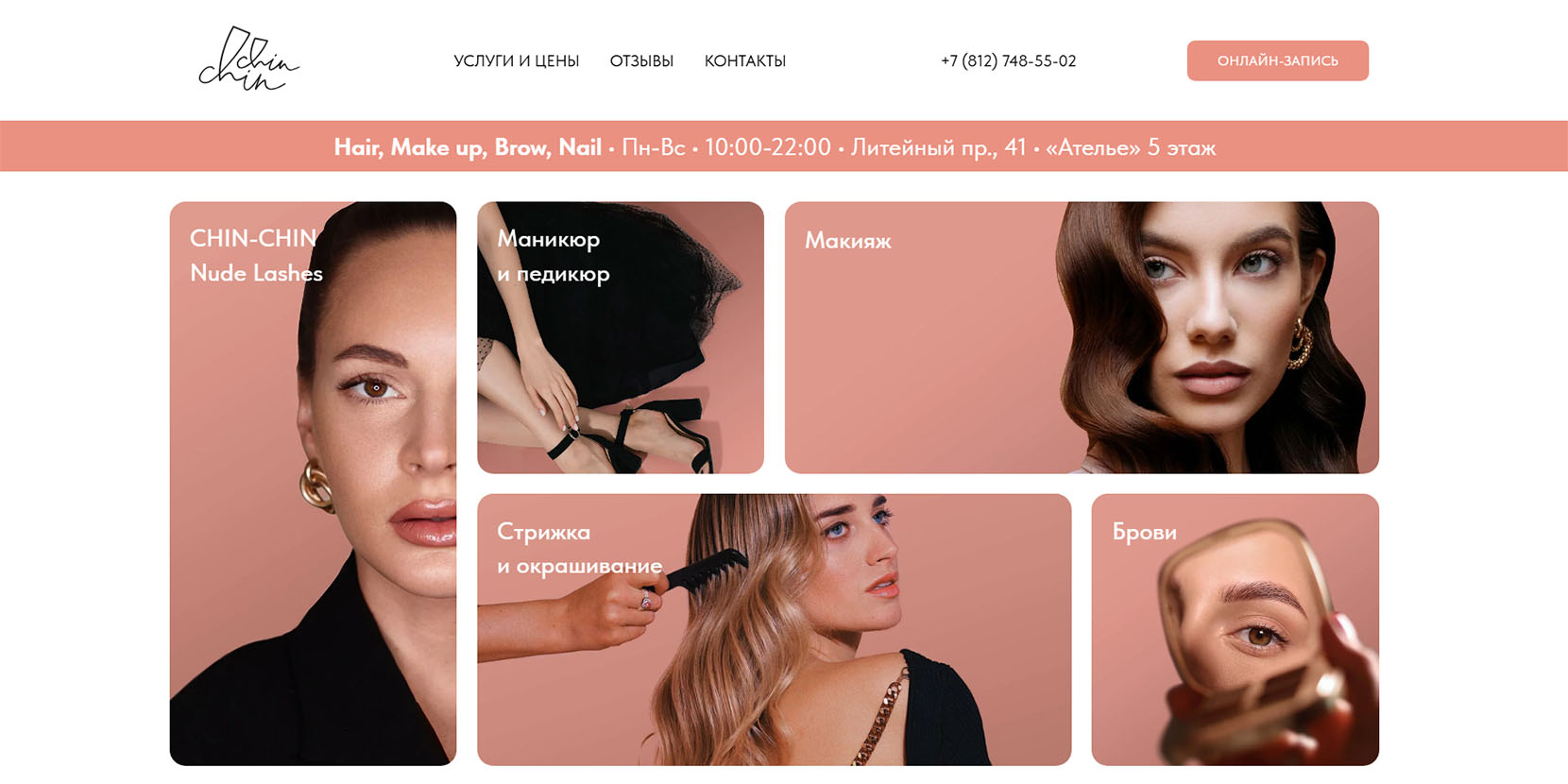Небольшая сеть салонов красоты. Один находится в историческом центре Петербурга на канале Грибоедова, второй — на проспекте Римского-Корсакова. Среди услуг — все самое необходимое. Маникюр, в том числе пилочный, японский, лечебный и в четыре руки, окрашивания, стрижки, массаж для лица и тела, коррекция бровей и другие бьюти-процедуры.