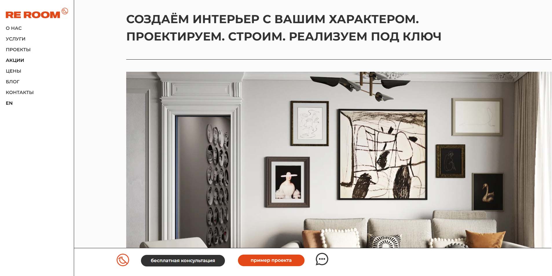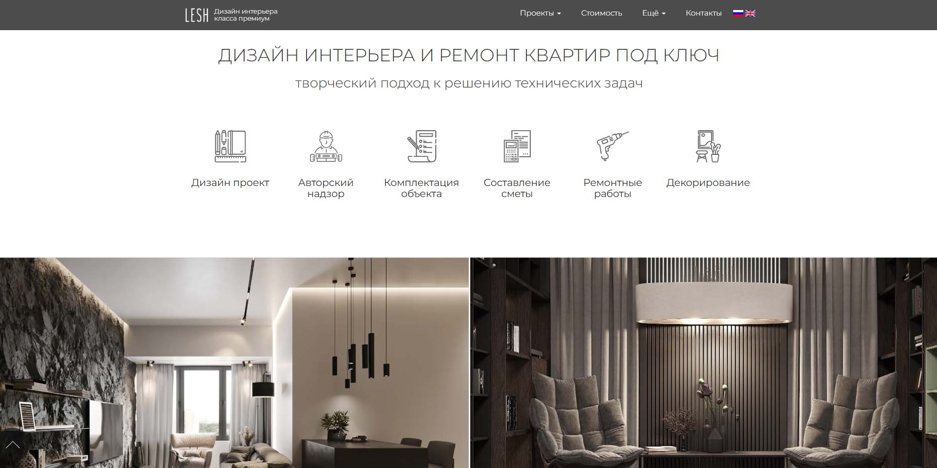 Студия предлагает «дизайн 3 в 1» с ремонтом под ключ и корпусной мебелью на заказ. Специалисты сопровождают проект полностью: проектируют и помогают согласовать перепланировку, подбирают материалы, мебель и технику под бюджет заказчика. Собственные ремонтные бригады и мебельное производство позволяют контролировать все этапы реализации дизайн-проекта: от укладки плитки до сборки гардеробной.