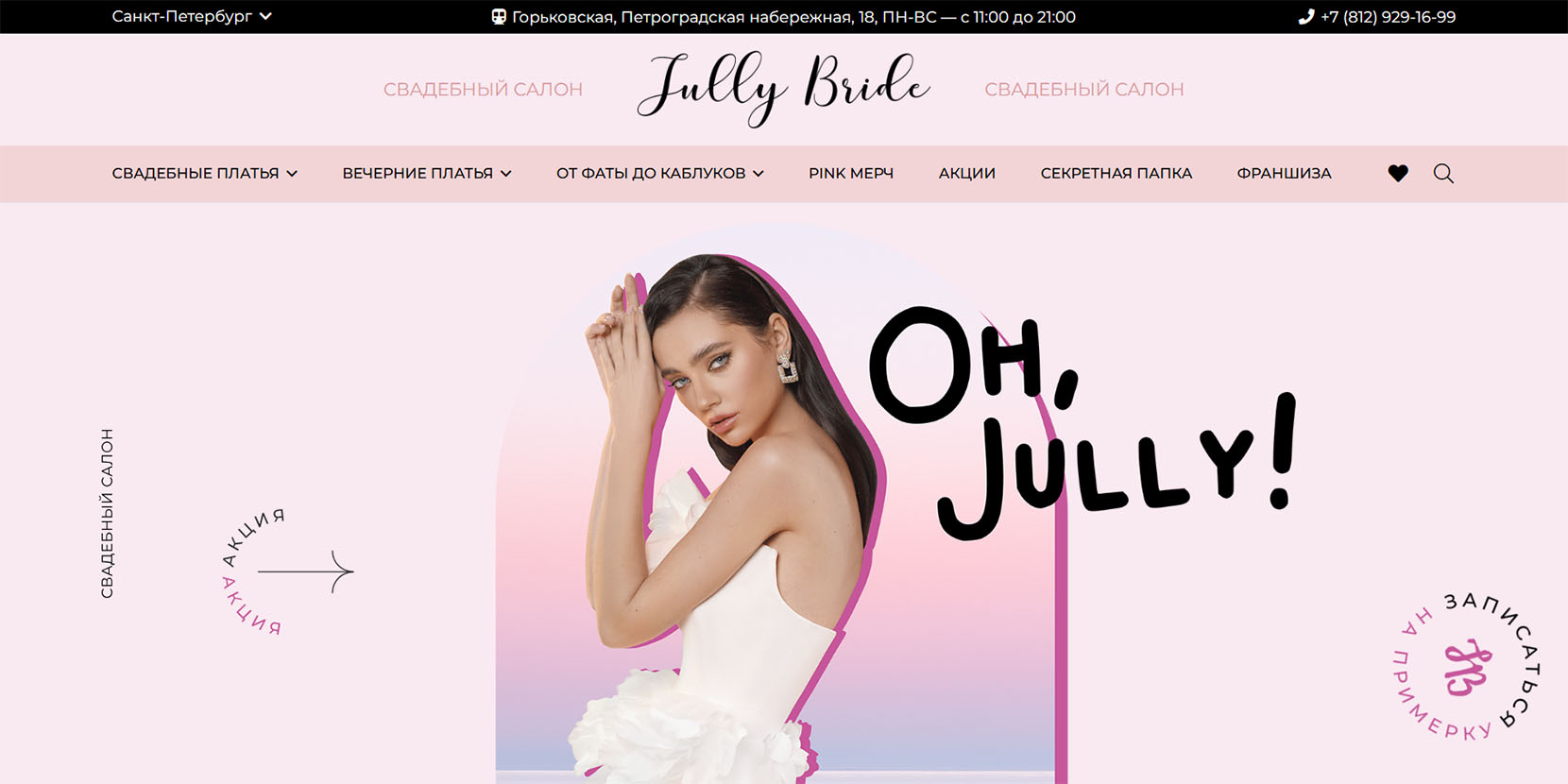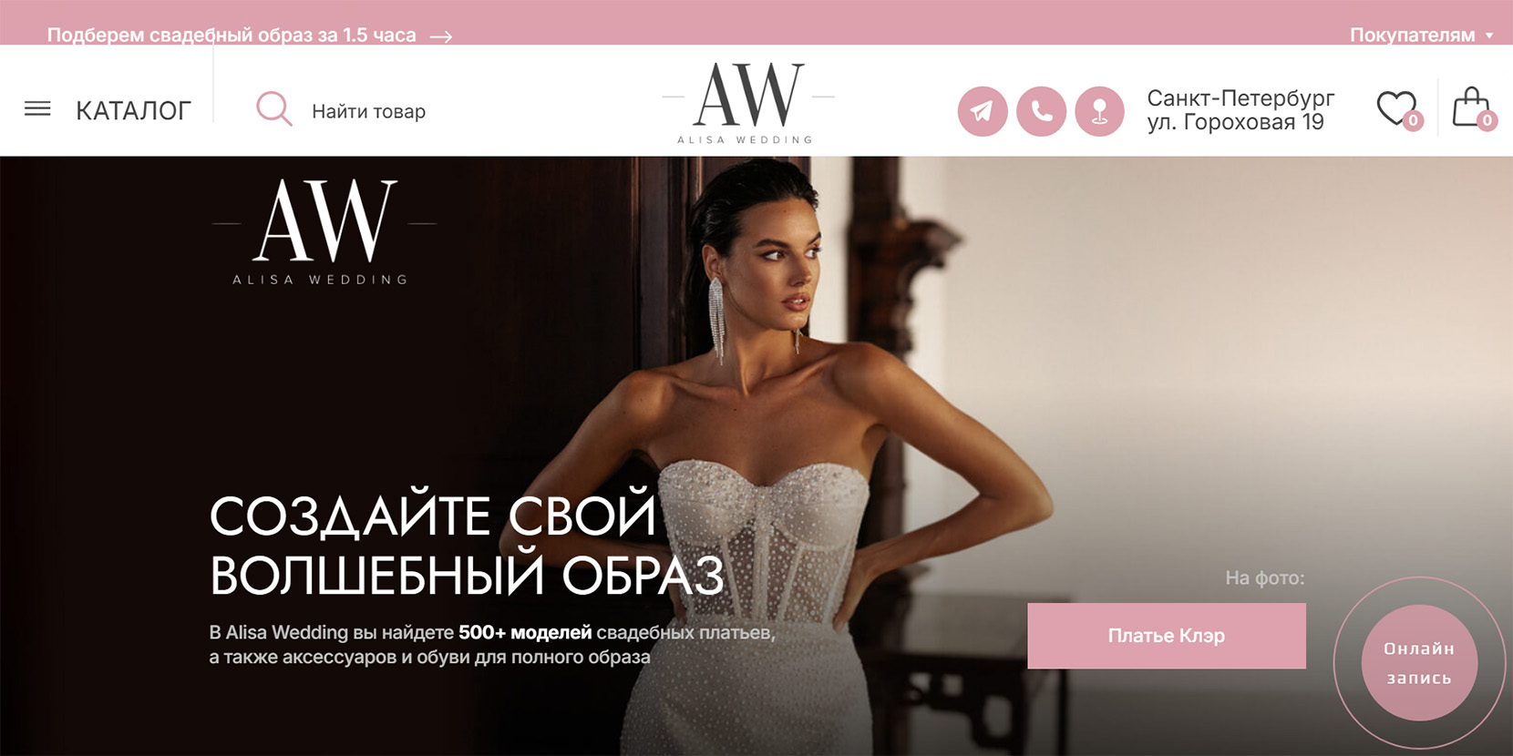 Салон работает в Петербурге более 10 лет и за это время тысячи невест подобрали здесь платья. На выбор невест как классические модели, так и эксклюзивные свадебные платья в разных ценовых категориях. Во время примерки гостей угостят игристым, предложат сладкие угощения, а после примерки и покупки платья подготовят подарки. В салоне оборудованы просторные примерочные и есть специальная фотозона, чтобы невеста могла увидеть, как она смотрится на фотографиях. Если после покупки платья что-то изменилось, свадебный наряд можно вернуть.