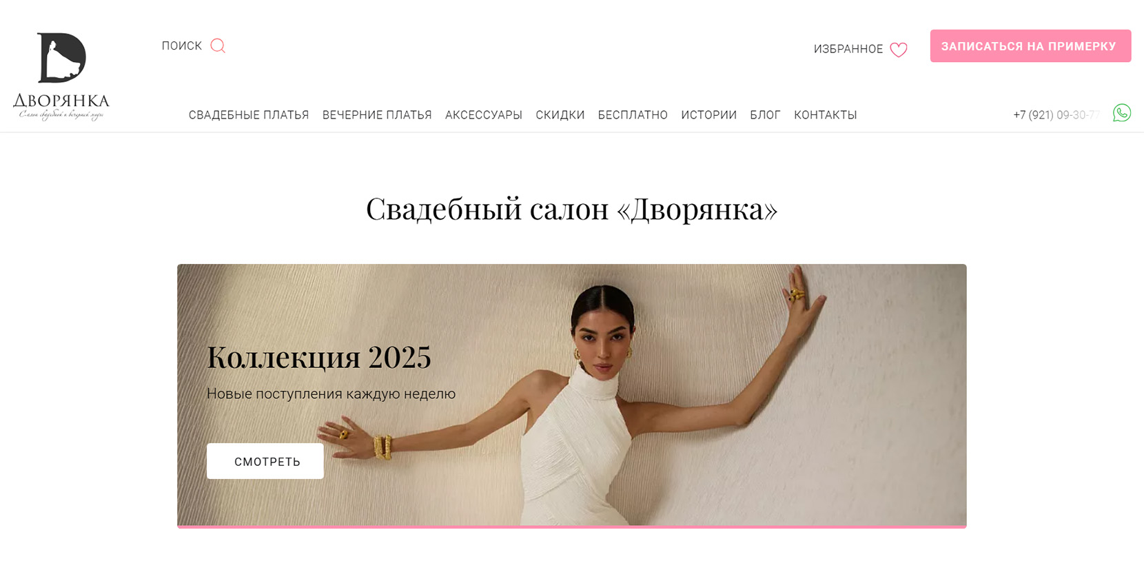 В ассортименте салона более 300 моделей свадебных и вечерних платьев известных российских и зарубежных брендов на любой рост и размер. Просторные и светлые примерочные, доброжелательный персонал и профессиональные консультанты — все это помогает создать атмосферу праздника еще на этапе выбора и примерки свадебного платья. Невеста может экспериментировать с различными образами, а ее подруги — активно участвовать в процессе и давать свои рекомендации.