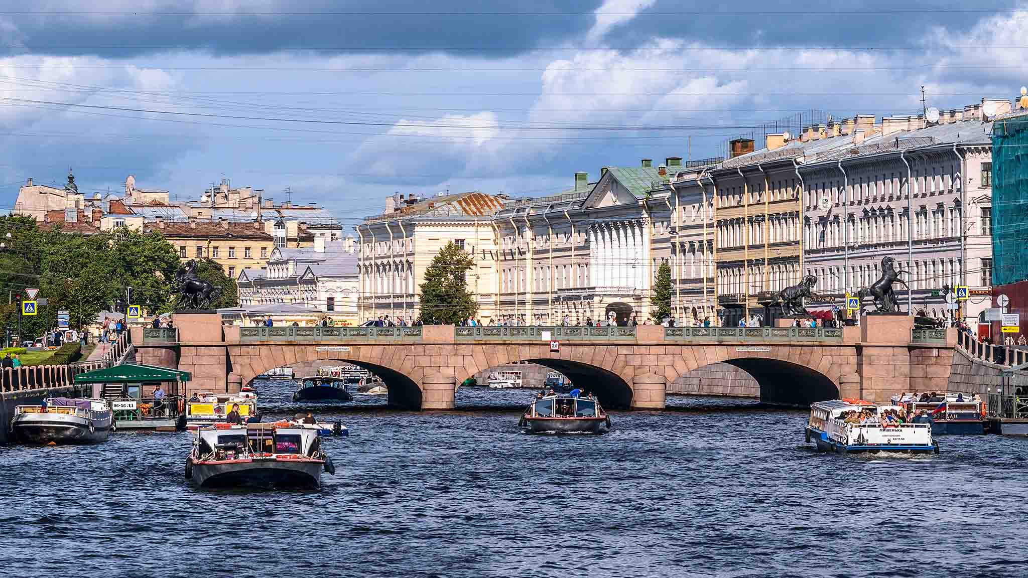 Аничков мост через реку Фонтанку — один из самых известных в Санкт-Петербурге. Он не разводной, но выполняет важную функцию: соединяет два острова центральной части города — Спасский и Безымянный, и является частью главной артерии Северной столицы — Невского проспекта. Знаменит мост скульптурной группой «Укротители коней», созданной Петром Клодтом. Во времена Петра I Аничков мост был одной из главных переправ через Фонтанку. Сейчас это не только один из основных автомобильных мостов центра Петербурга, но и отличный ориентир для прогулок по городу: поблизости находится немало знаковых достопримечательностей, а в период навигации от причала за мостом отправляются прогулочные катера по рекам и каналам.