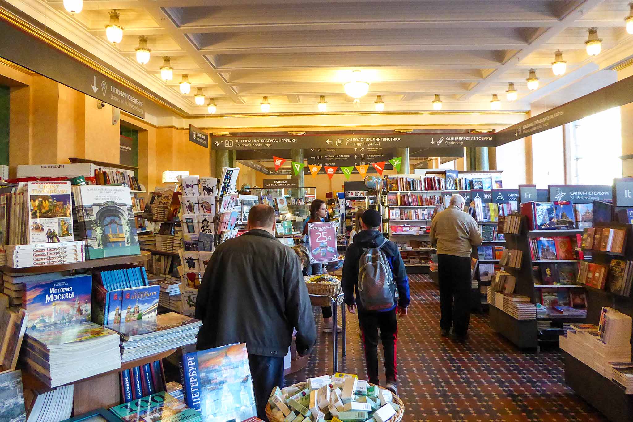 В Доме Зингера открыт именитый «Дом книги», в котором тоже есть, на что посмотреть: старинные потолочные светильники, массивные колонны, интересно оформленные потолки. А на первом этаже есть зал искусств, где регулярно проходят встречи с писателями и презентации книг, а также образовательные лекции.