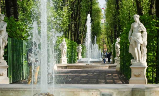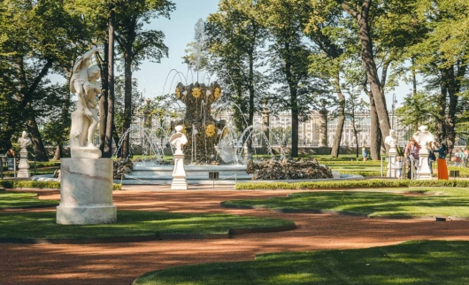 Летний сад – настоящий символ Санкт-Петербурга. Его можно назвать главным и самым известным парком города. Это старейший сад, который в 1704 году приказал заложить сам Петр I. Над проектом трудились известнейшие русские и иностранные архитекторы и садовники, но исправления в план Петр I вносил сам и вообще следил за каждой деталью и мелочью при его обустройстве. Сегодня парковый шедевр знаменит на весь мир, это одна из главных достопримечательностей города. Летний сад в Санкт-Петербурге со всех сторон обрамляет вода – реки Нева и Фонтанка, Лебяжья канавка и Мойка. Планировка у парка простая: он состоит из трех параллельных аллей с вековыми деревьями, а перпендикулярно их пересекают несколько других. Но самое главное здесь – это выдающееся убранство. Сад украшают фонтаны, пруды, зеленые лабиринты и тоннели, красивейшие клумбы, старинные вазы. А самые знаменитые «жители» Летнего сада – конечно, мраморные скульптуры. Около сотни статуй и бюстов античных героев застыли в Летнем саду – Нимфа, Амур и Психея, Аврора, древнегреческие музы. Большая часть скульптур была создана итальянскими мастерами XVIII-XIX веков. На территории Летнего сада при Петре было много построек. До наших дней дошел его знаменитый Летний дворец, ведь парк задумывался как летняя резиденция. А еще здесь были, например, специальные галереи, где во время торжеств накрывали столы и устраивали танцы. К слову, именно в Летнем саду проходили знаменитые петровские ассамблеи – пышные гулянья на открытом воздухе.