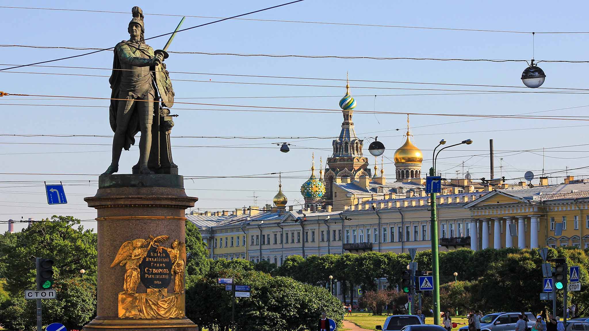 Постепенно военная тематика все больше проникала сюда. На поле возвели памятники полководцам Александру Суворову и Петру Румянцеву. Интересно, что памятник Суворову начали устанавливать еще при жизни выдающегося фельдмаршала. Суворов предстает в образе бога войны Марса. Именно после установки этого памятника горожане и прозвали это место Марсовым полем.
