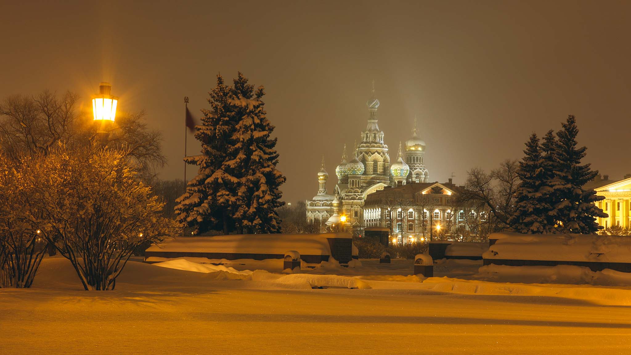Если хотите сделать фото в полный рост на фоне Спаса-на-Крови — отправляйтесь чуть левее. Отсюда же откроется вид и на набережную реки Мойки. На Марсовом поле установлены красивые винтажные фонари и изящные лавочки — они отлично дополнят фотокомпозицию.